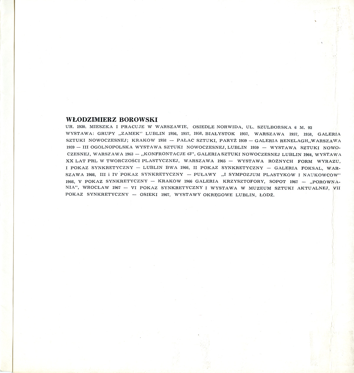 Katalog: VIII Pokaz Synkretyczny Włodzimierza Borowskiego pt. „Uczulanie na kolor” w Galerii Od Nowa, Poznań 1968.