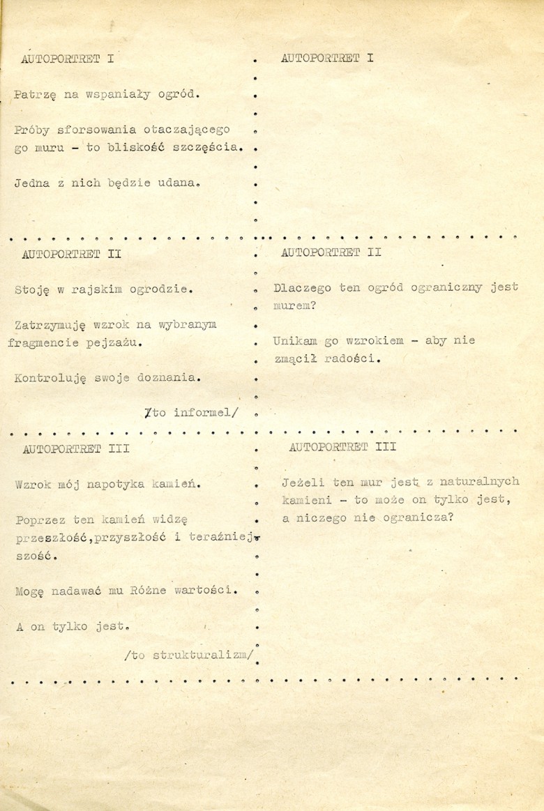 Tekst Włodzimierza Borowskiego dotyczący pracy „Est-etyka. Autoportrety.”, Dłusko, luty 1977, relARTacje
