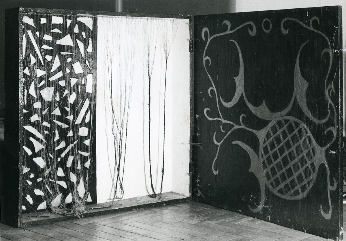Wystawa Włodzimierza Borowskiego „Ślady” (obejmująca wybrane prace z lat 1956-1992) w Centrum Sztuki Współczesnej w Warszawie, 1992 (na zdjęciu praca z serii Niciowce, 1966)