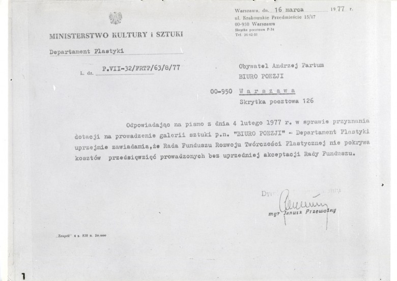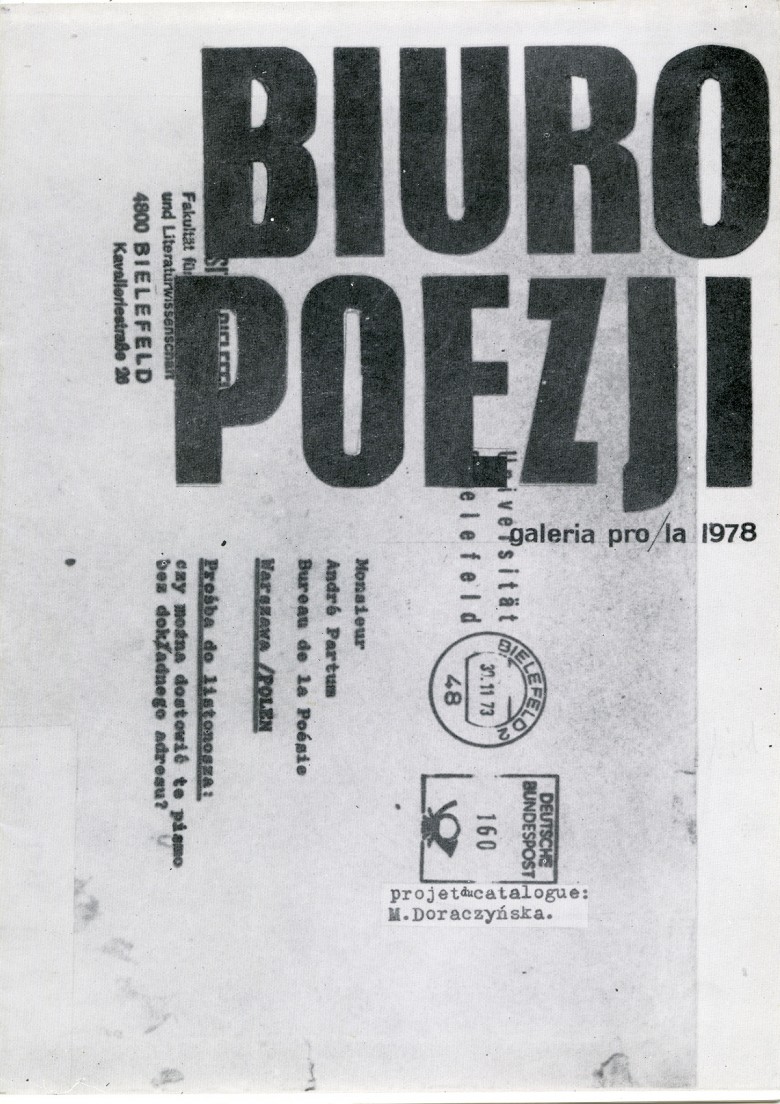 Katalog „Biuro Poezji”, Galeria Pro/La 1978; zawiera dokumentacje Biura Poezji oraz prace Andrzeja Partuma.