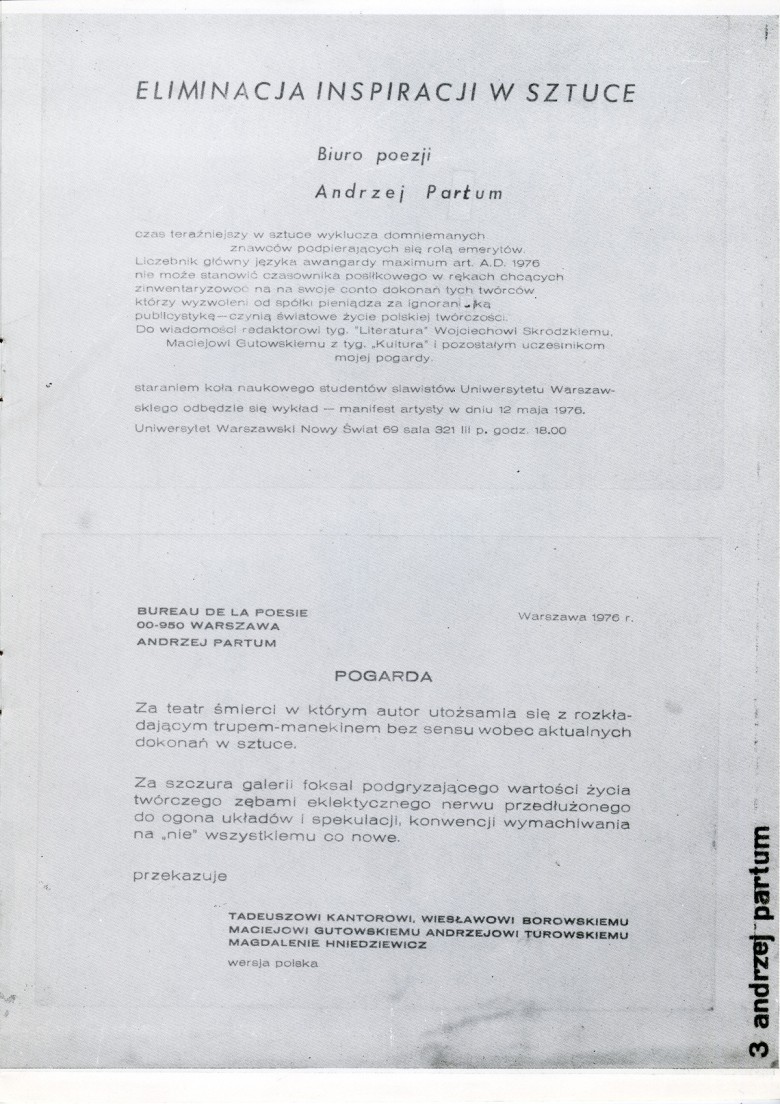 From Andrzej Partum Archives Courtesy Wanda Lacrampe