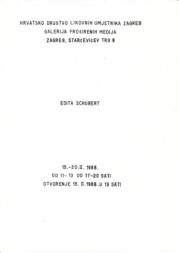 letak izložbe Edite Schubert u Galeriji Proširenih medija