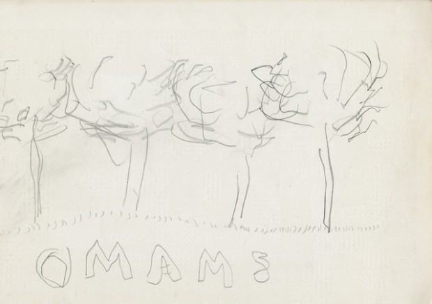 Risbe z naslovom Italijanska Pop krajina so nastajale v času, ko je Pogačnik obiskoval Gimnazijo v Kranju, kjer je sodeloval v dramski skupini (po eni izmed igranih igranih vlog si je nadel tudi psevdonim Toska, s katerim je podpisoval najzgodnejša dela). Leta 1964 so s skupino odpotovali gostovat v San Marino. Omenjene risbe so nastajale med vožnjo v avtobusu, ko je Pogačnik skozi okno beležil bežečo pokrajino. Na risbi je prikazana pokrajina z drevesi, pod njo pa napis OMAM (?)