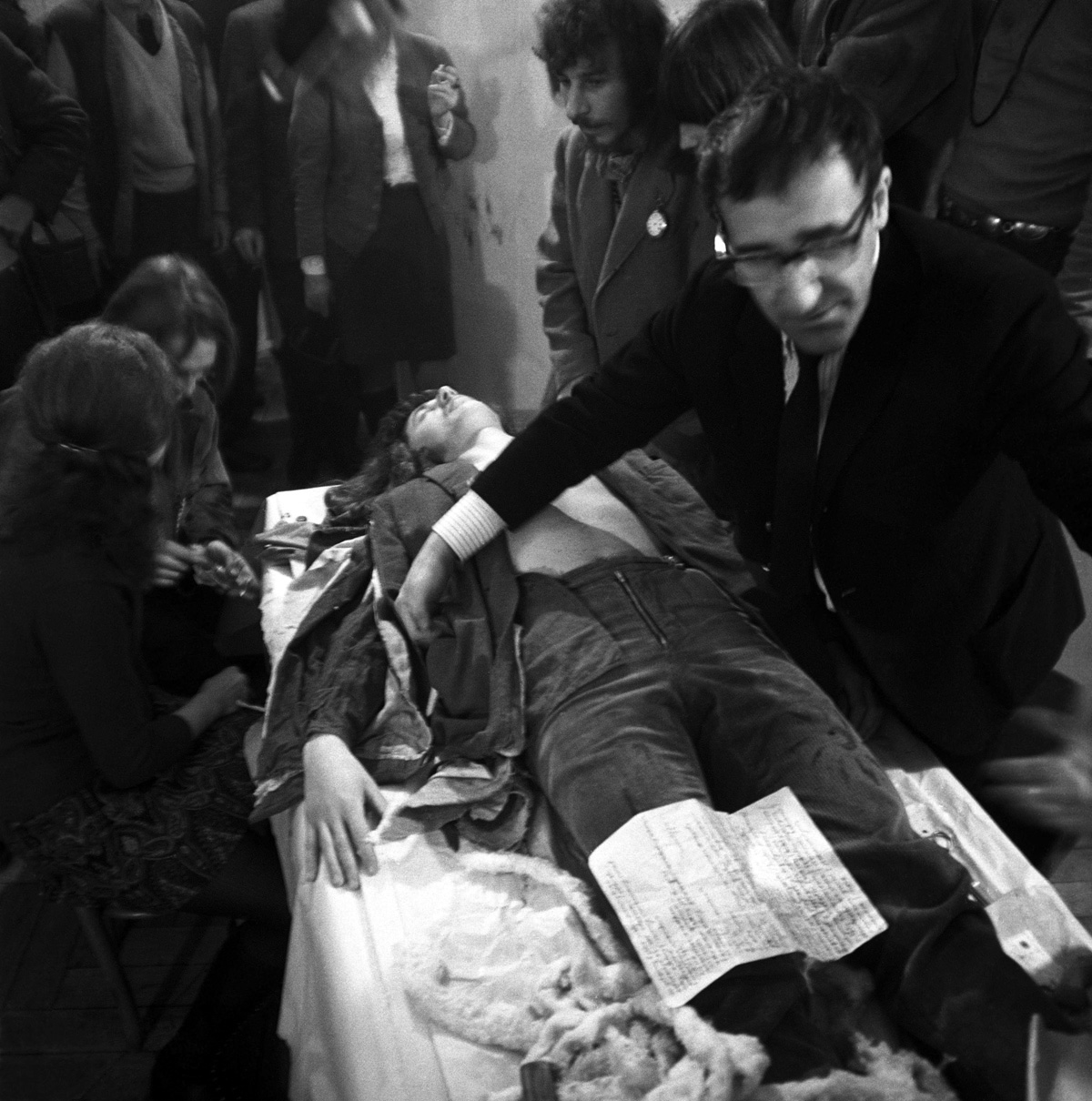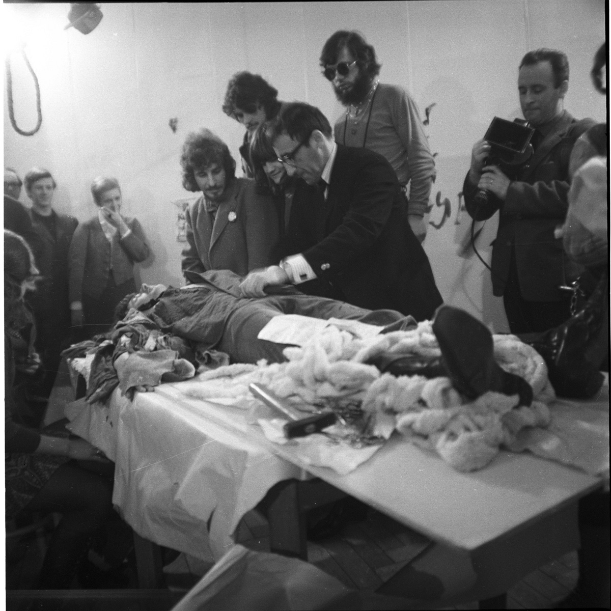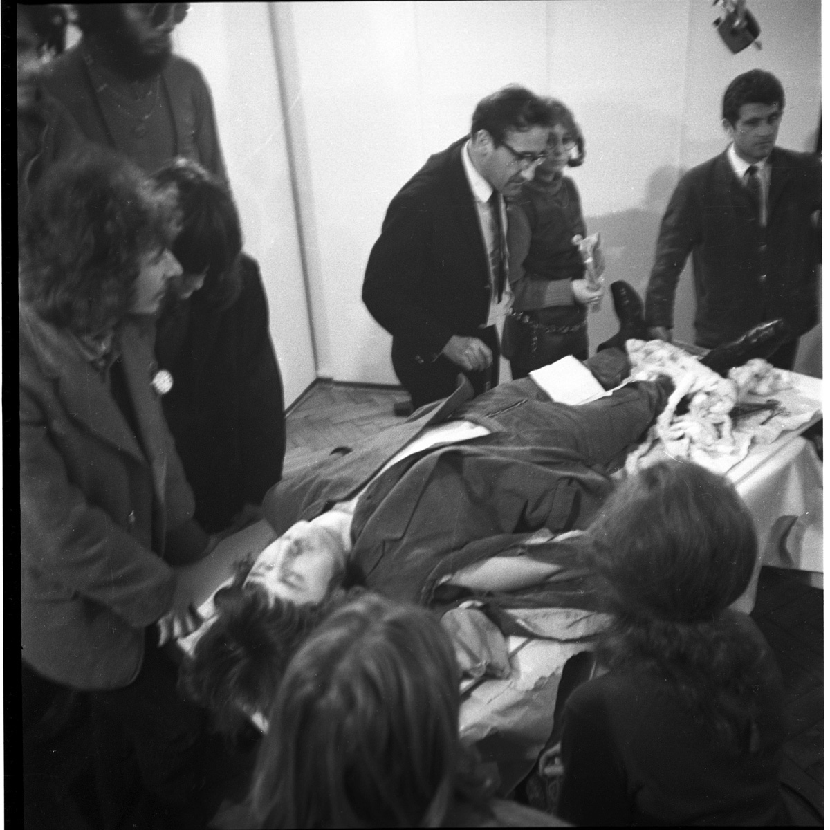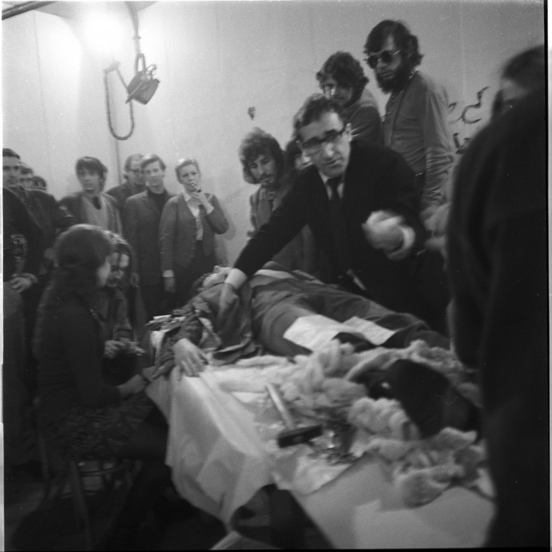 Eustachy Kossakowski's photographs of Tadeusz Kantor's happening "Rembrandt's Anatomy Lesson" at the Foksal Gallery, Warsaw, 1969