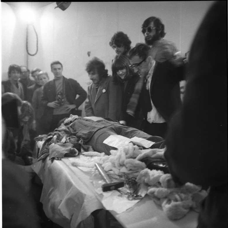 Eustachy Kossakowski's photographs of Tadeusz Kantor's happening "Rembrandt's Anatomy Lesson" at the Foksal Gallery, Warsaw, 1969
