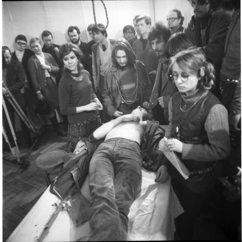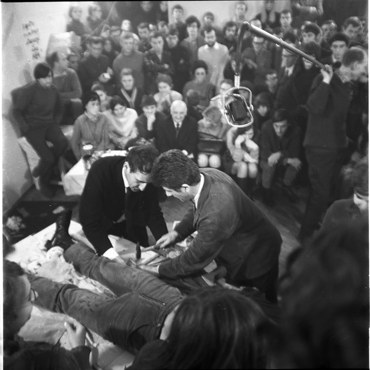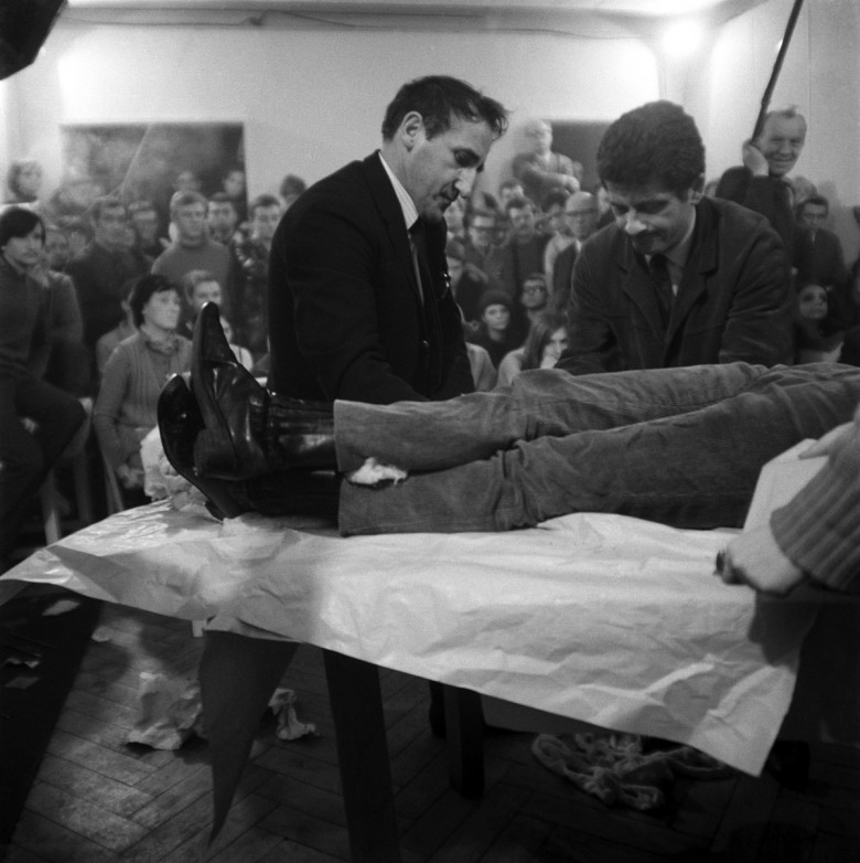 Eustachy Kossakowski's photographs of Tadeusz Kantor's happening "Rembrandt's Anatomy Lesson" at the Foksal Gallery, Warsaw, 1969
