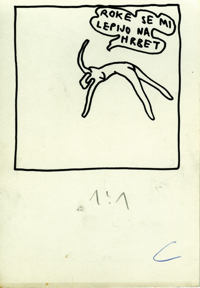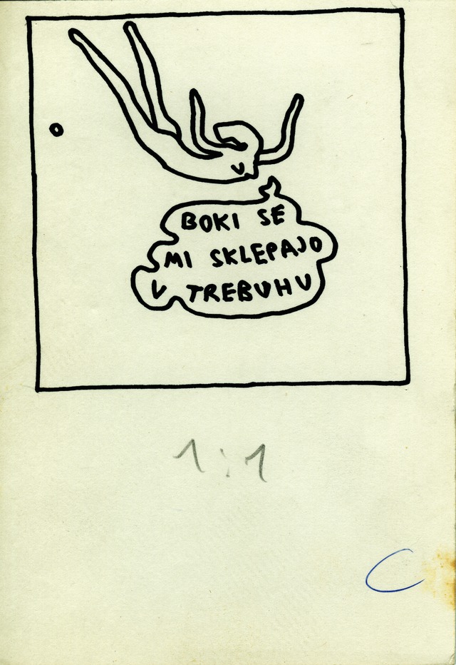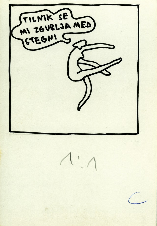 Objavljeno v Tribuni 22. 12. 1969, XIX, št. 3, z napovednikom: "Marko Pogačnik prikazuje fantastični strip Tinza v svetu 47 sil in kaj se godi z njenim telesom." 12 podob je predstavljenih na naslovnici, ostalih 35 na posameznih delih v študentskem listu.