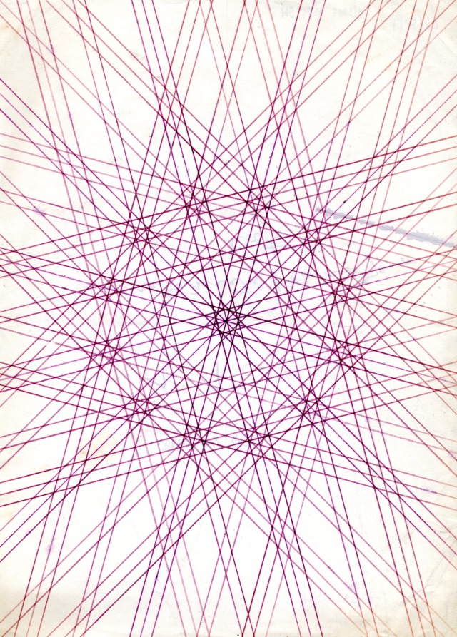 Geometrična mreža ravnih sekajočih se linij tvori simetrični vzorec. Risba je bila kasneje v razmerju 1:1 objavljena v reviji PU. Ime in priimek Davida Neza na zadnji strani risbe nista avtorska, kasneje ju je napisal Marko Pogačnik.