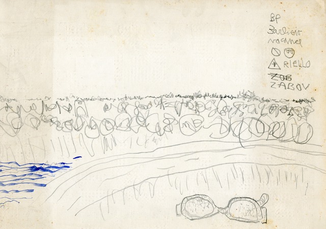 Risbe z naslovom Italijanska Pop krajina so nastajale v času, ko je Pogačnik obiskoval Gimnazijo v Kranju, kjer je sodeloval v dramski skupini (po eni izmed igranih igranih vlog si je nadel tudi psevdonim Toska, s katerim je podpisoval najzgodnejša dela). Leta 1964 so s skupino odpotovali gostovat v San Marino. Omenjene risbe so nastajale med vožnjo v avtobusu, ko je Pogačnik skozi okno beležil bežečo pokrajino. Na risbi je prikazana pokrajina z drevesi in hišo, vodno površino na levi in potjo na desni. Temu se pridružijo v prvem planu ležeča očala, ki spominjajo na kasnejše zanimanje pop artiklov in reističnega dojemanja sveta.
