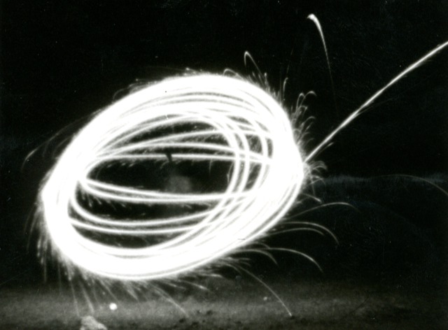 Na fotografski oziroma filmski trak zabeleženo gibanje svetle točke kot lika;