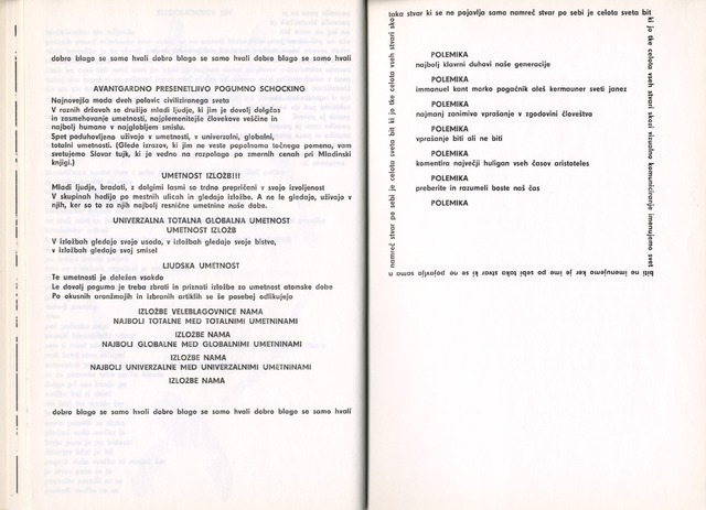Knjiga Aleša Kermaunerja je zbrano življensko delo avtorja, ki ne upošteva časovnega ali drugega formalnega zaporedja. objavljeni prispevki se navezujejo zaradi določenih vsebinskih zvez med njimi, ki jih dodatno poudarjajo tudi drugi oblikovno vizualni elementi. Najavo o izdanji knjige najdemo v "Tribuni, študentskem listu, Ljubljana, 12. oktober 1966, letnik XVII, št.1", kjer je na peti strani zapisano naslednje: " Tu je knjiga Aleša Kermaunerja. Začne se z petimi nepotiskanimi listi papirja. Na levo od tu je 17 potiskanih listov papirja. Od tam (iz petega nepotiskanega lista papirja) izvira luknja, ki teče skozi desno stran knjige. Na desni strani knjige je 10 listov potiskanega papirja. Listi so vpeti v razdvojen list kartona. Vzhodni list kartona je zaprt. Zahodni list kartona odpira široka luknja. Kupec gleda potiskano stran kartona, v knjigo gleda nepotiskan karton. Pet nepotiskanih listov papirja je papir sam. Luknja je luknja in nič papirja. Prva tiskana stran na desno je podatek, ki ga zahteva zakon o tisku. Prva tiskana stvar na levo je reklama za polemiko v okviru polemike, ki je to reklamo naročila. Nato je odtis rešetke kanala z neke ljubljanske ulice in reklama za kulturo ljudstva. Odtis ljubljanskega dnevnika z dne 5. 4. 1966. BLEDOLIČNIKOV . . . SIN Trikrat tiskana pesem na ovitku prevrtanega kovanca za 50 centov. Prevodi izrekov zena. Vrv "HREPENENJE. KAJ JE OSTUDA NO. 2, postavljena kot tista pesem v POKRU Tomaža Šalamuna. Potrošikov evangelij. The Rolling Stones MRK. Knjiga Aleša Kermaunerja se ne drži: "vrstnega reda nastanka tekstov" "izključnega avtorstva del" "izpostavljanja risbe" "ekonomične izrabe papirja" "zaželenega reza" "Kvadrata formata" "Estetskega izobilja" Knjiga se drži sebe. Knjiga "Aleša Kermaunerja", izdala in založila Kulturna komisija pri Univerzitetnem odboru ZSJ v Ljubljani. Tiskala tiskarna učnih delavnic v Ljubljani 1966/800 izv. Kupite jo v vsaki knjigarni 500 SDin
