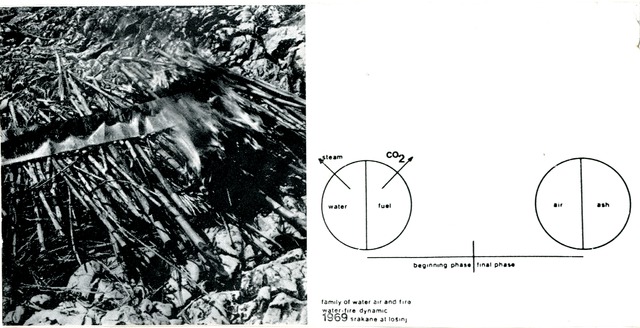 Projekt "Ogenj - voda dinamično", je eden izmed šestih projektov iz "Družine ognja, zraka in vode", ki jih je Pogačnik realiziral v okviru poletnih projektov. Člani skupine OHO so jih izvajali v času od junija do septembra 1969 na različnih lokacijah: Bratranca pri Podvinu, Koper, Medno, Jeprca, Kranj, Ljubljana, Srakane pri Malem Lošinju, kjer je bil izveden tudi projekt "Ogenj - voda dinamično." Gre za plastično cev napolnjeno z vodo in položeno na suho trsje. Po procesu sežiga sta kot rezultat ostala le zrak in pepel. Kot pove že naslov, gre za idejo o prepletenosti štirih elementov in njihovemu spajanju ter prehajanju, ki se lahko vrši na dinamičen ali statičen način. Vseh šest projektov iz "Družine ognja, zraka in vode" je bilo predstavljeno v reviji Problemi, aprila 1970, letnik VIII, št. 88. Prispevek se je obravnaval kot razstava znotraj revije.