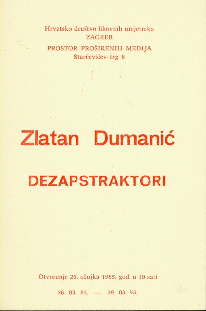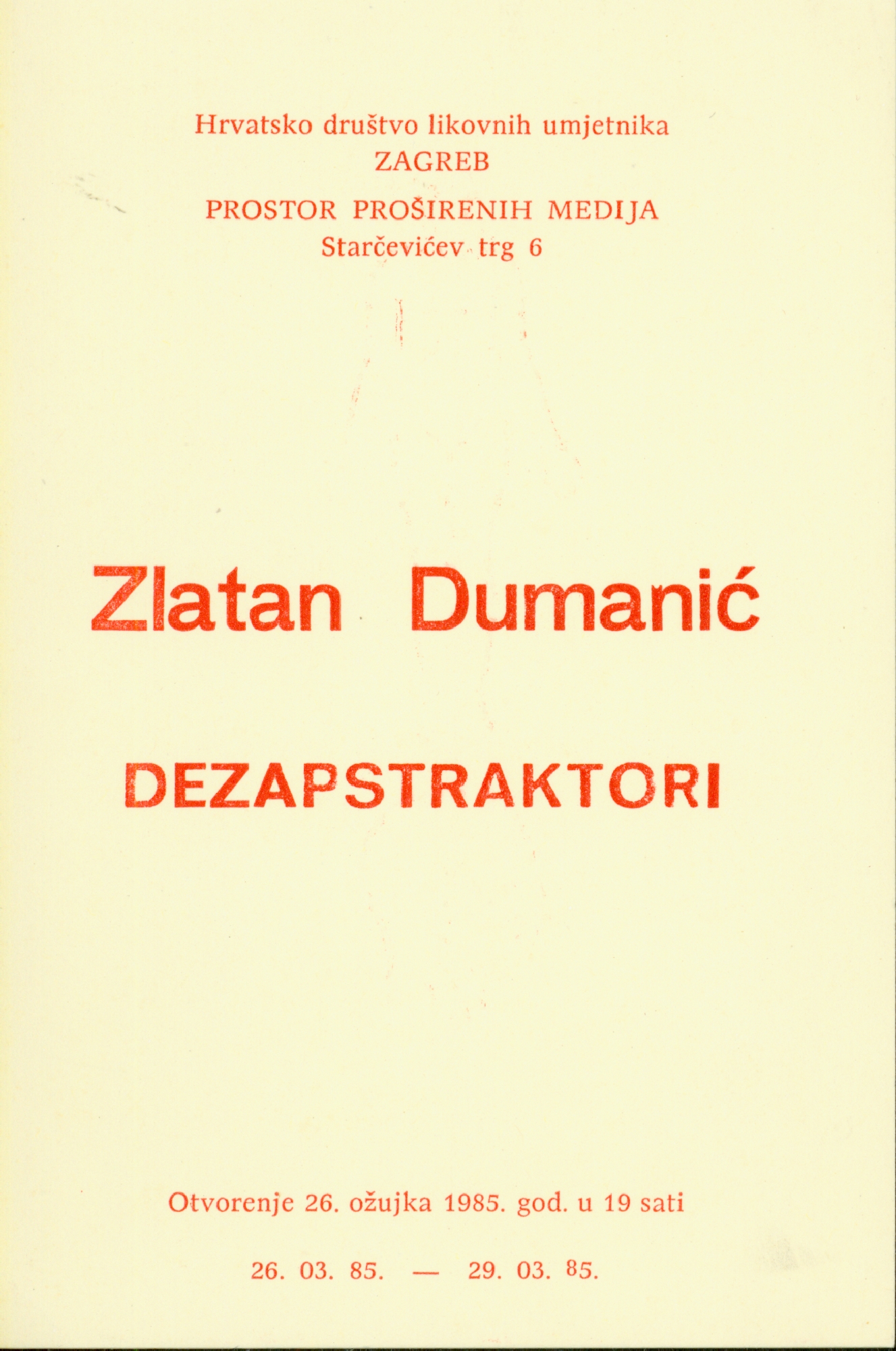 pozivnica za izložbu "Dezapstraktori" Zlatana Dumanića u PM