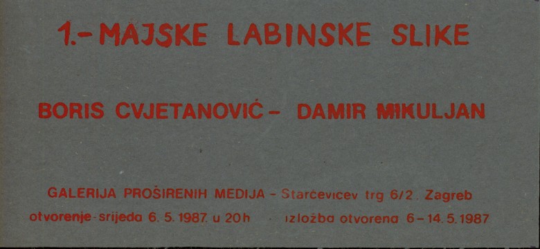 pozivnica za izložbu "1.-majske labinske slike" Boris Cvjetanović i Damir Mikuljan, PM