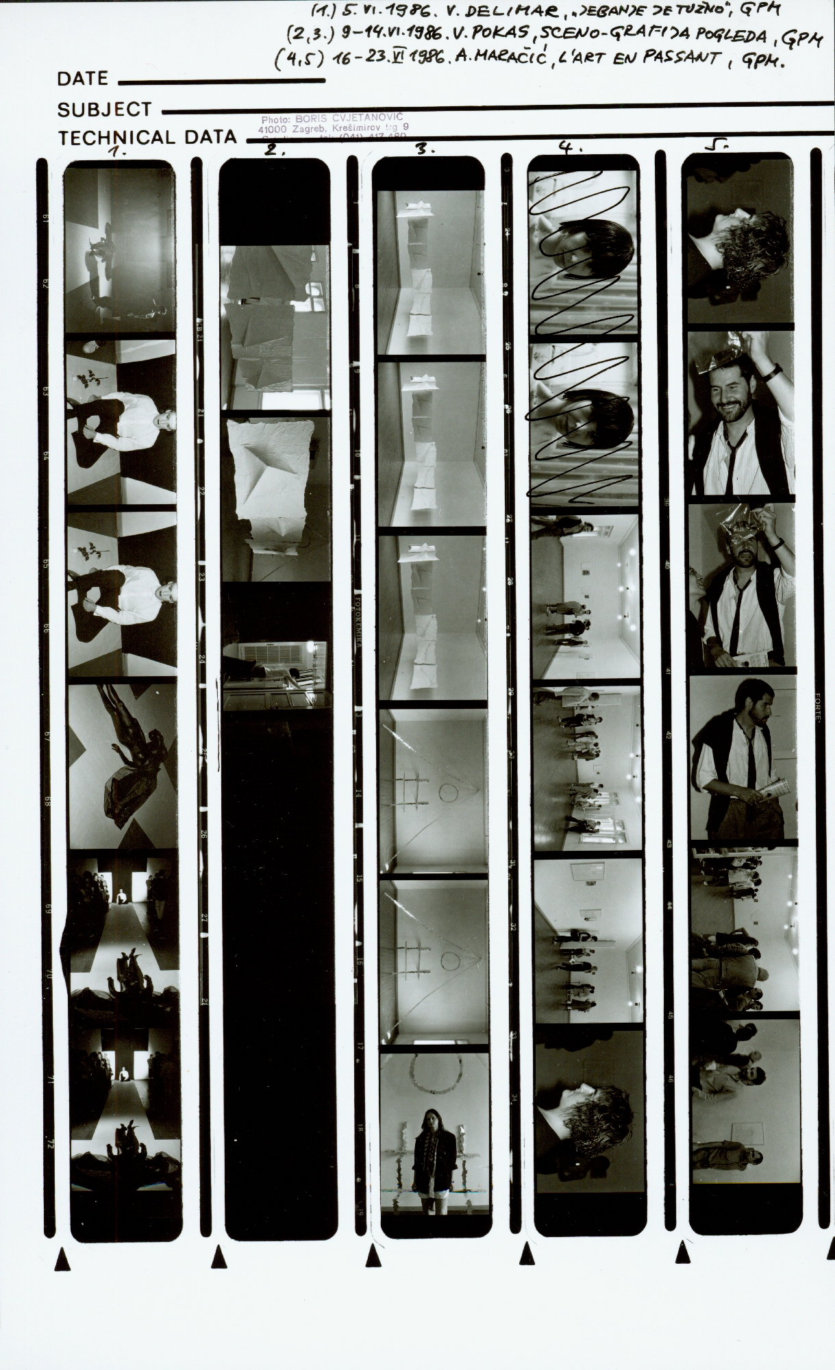 fotografija Boris Cvjetanović; Vesna Pokas "Sceno-grafija pogleda" (9-14.6.1986.); Antun Maračić "L'art en passant" (16-23.6.1986.); Vlasta Delimar performance "Jebanje je tužno" (5.6.1986.)