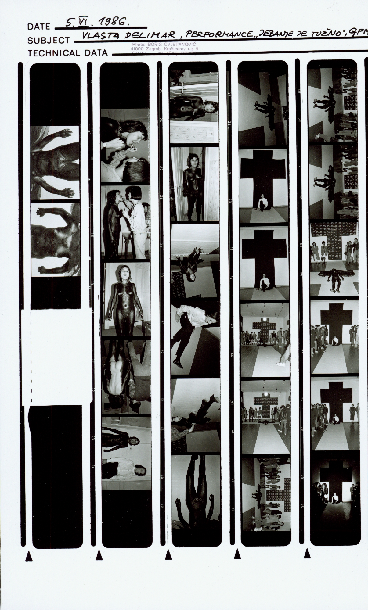 fotografija Boris Cvjetanović; Vlasta Delimar performance "Jebanje je tužno" (5.6.1986.)