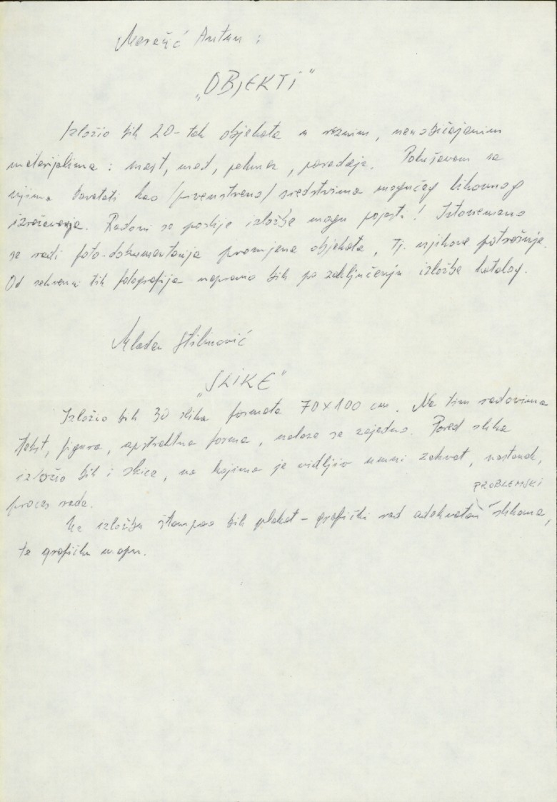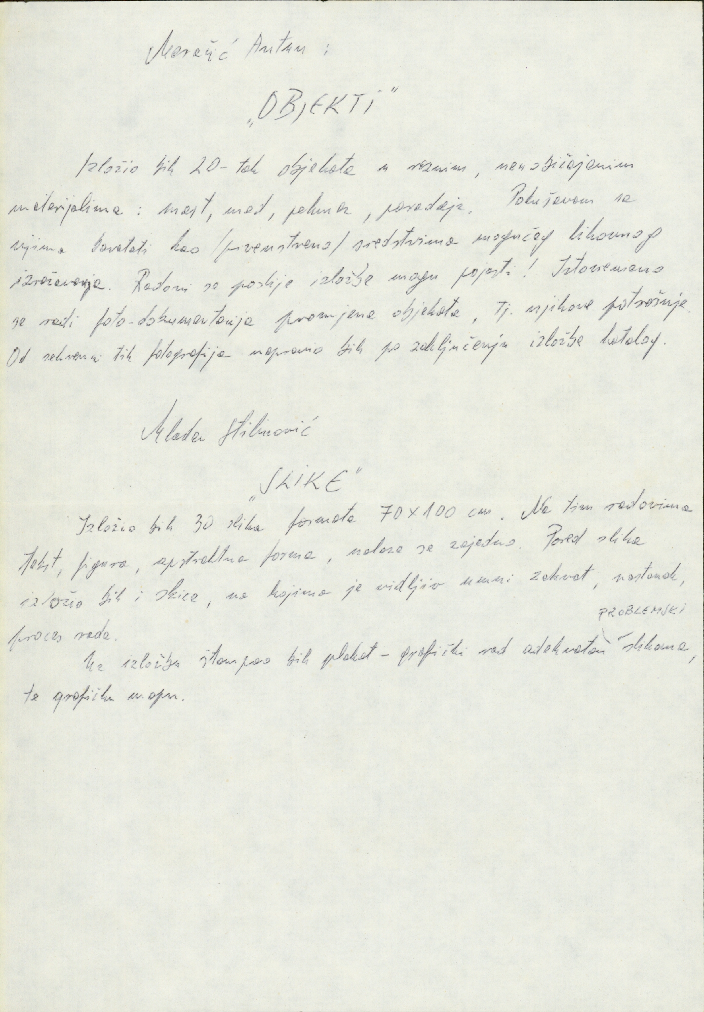 prijedlog izložbe u PM-u; "Objekti", Sven Stilinović "Slike"