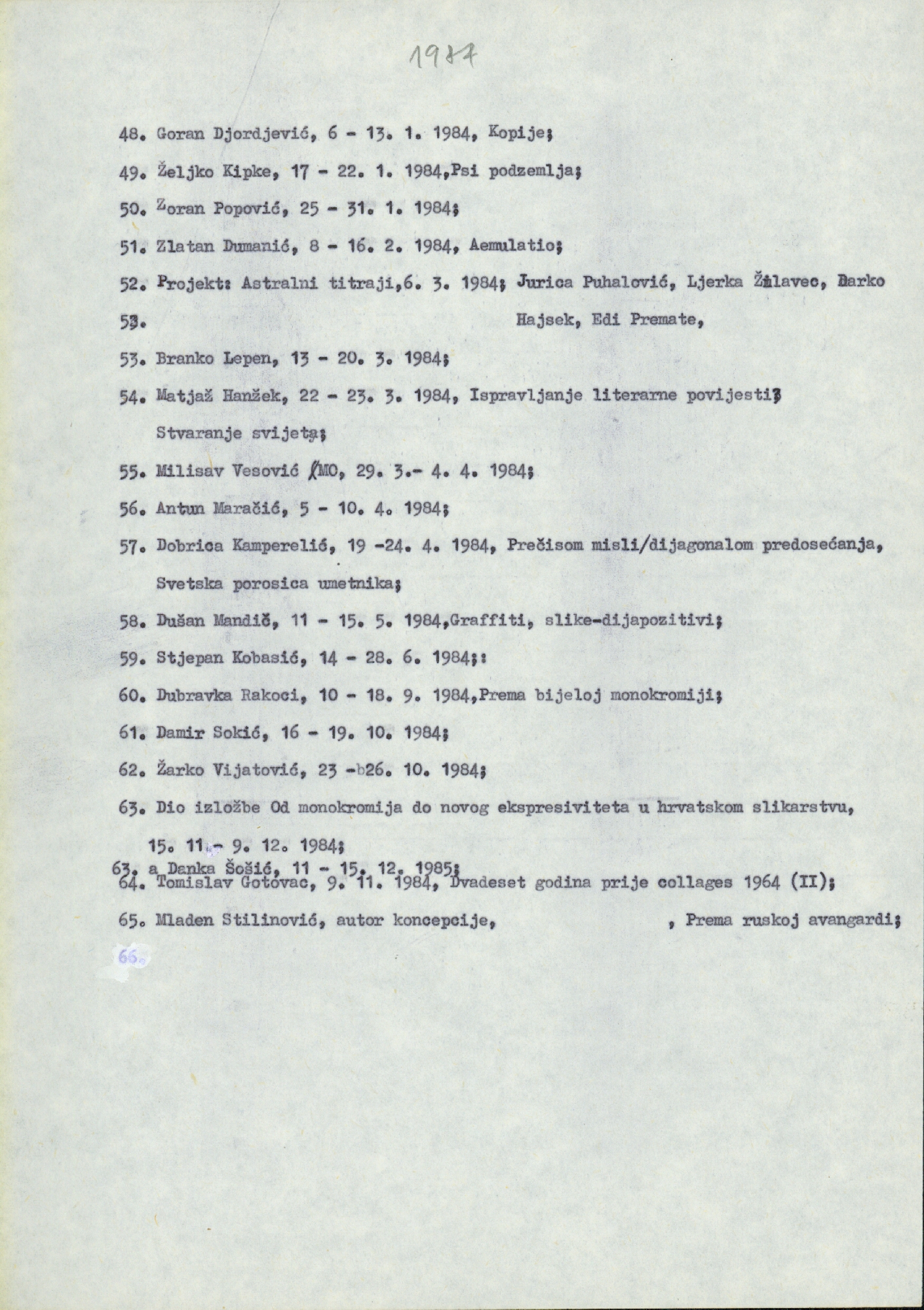 popis izložbi u PM-u 1984. godine