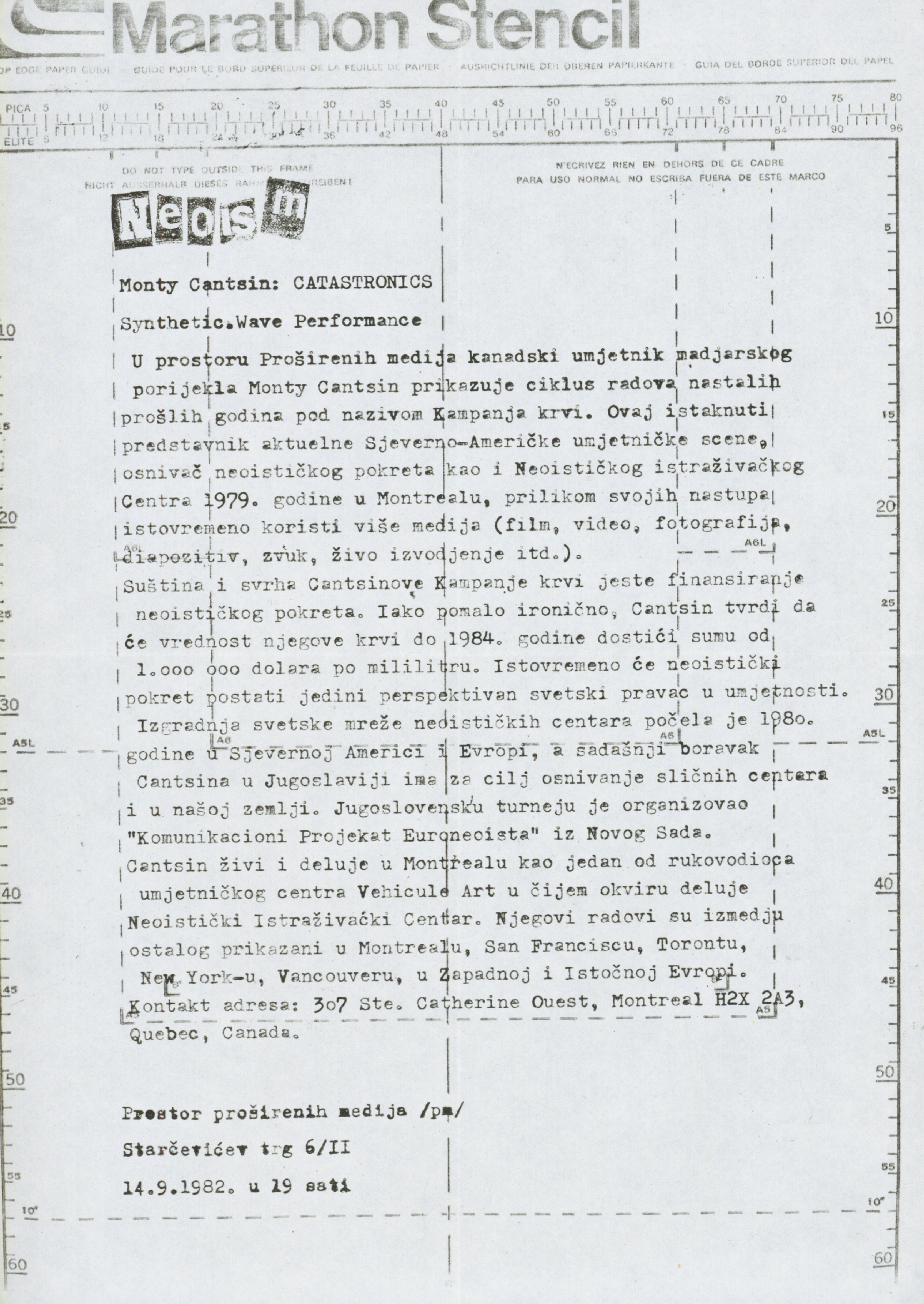 letak za live/video performance "Neoism" (Balkanska kampanja) u PM