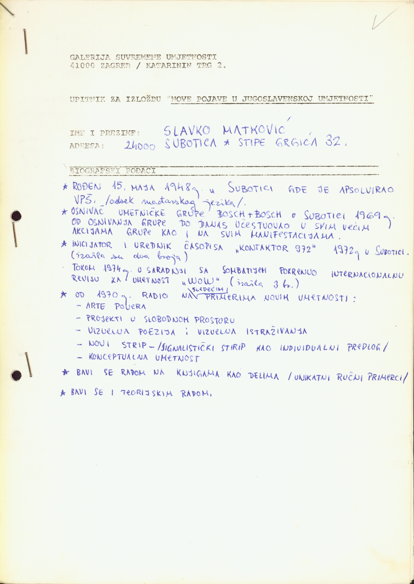upitnik za izložbu