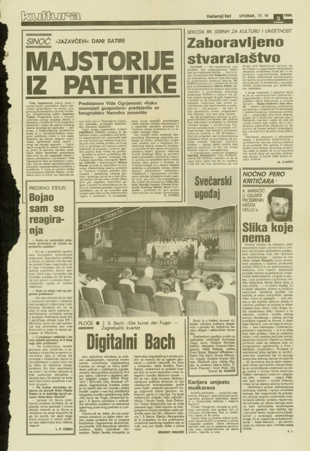 članak "Slika koje nema" Ana Lendvaj, Večernji list, 17.6.1986., stranica 9
