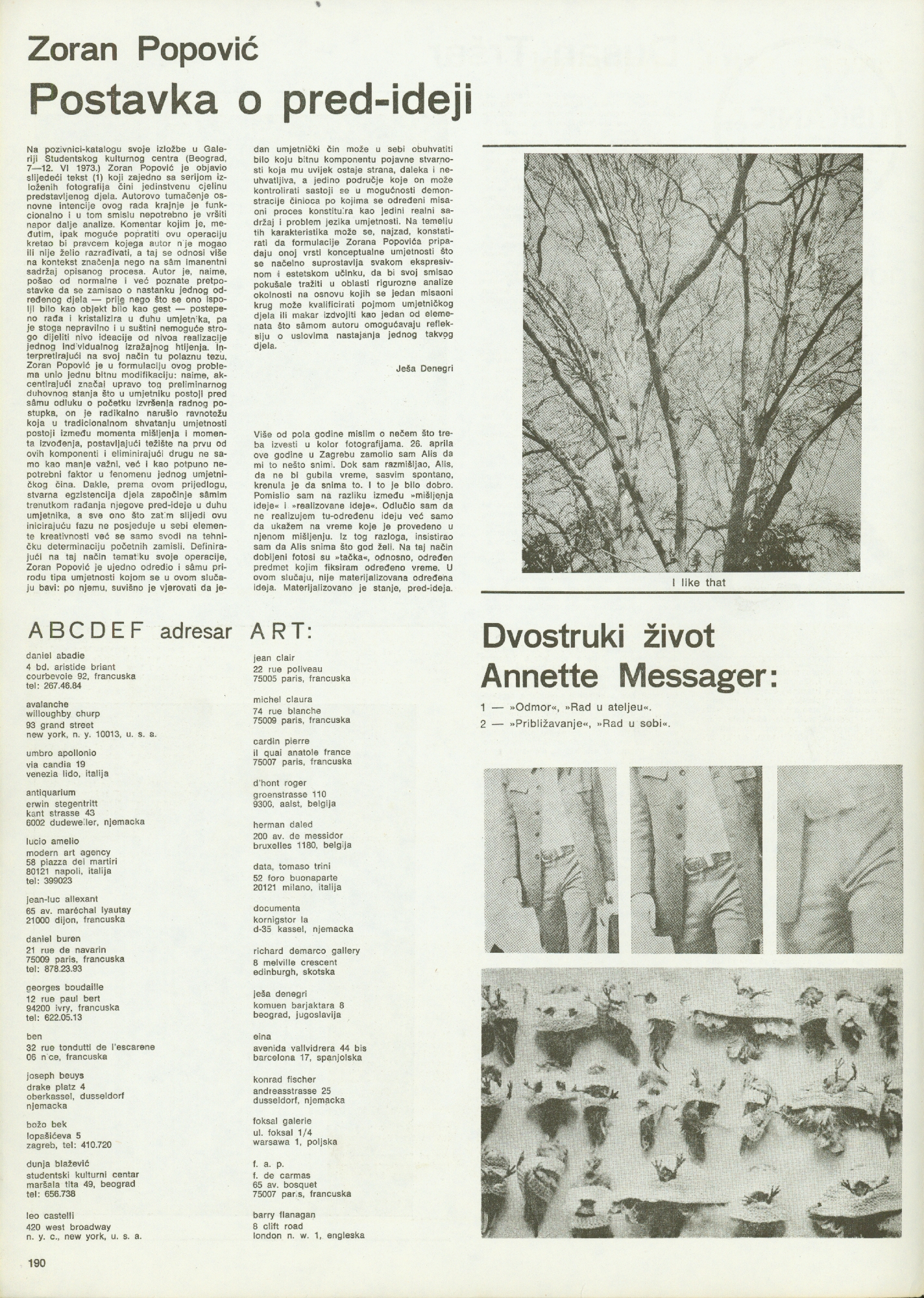 Zoran Popović, Ješa Denegri, Annette Messager