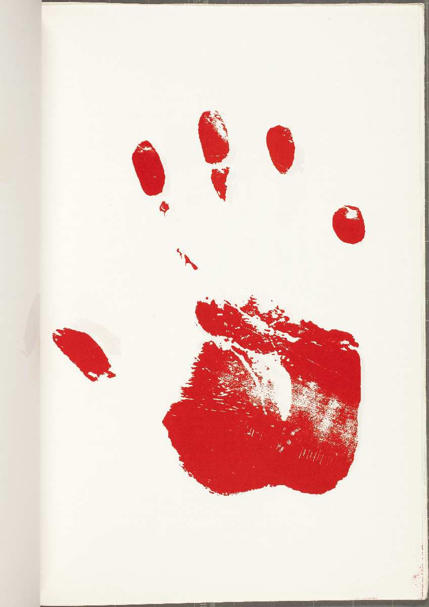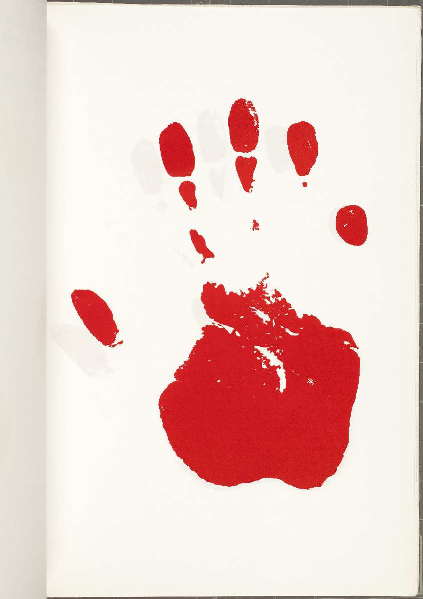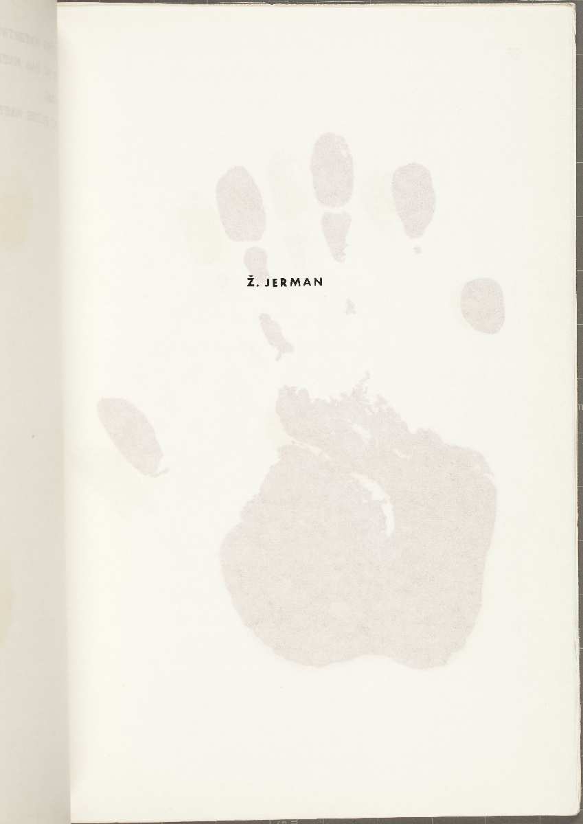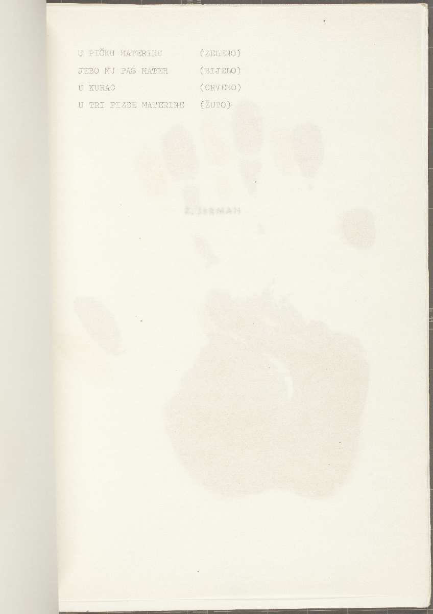 Željko Jerman from series (1-9): na foliju otisnuta šaka premazana dek bojom (2.3.4. otisak)