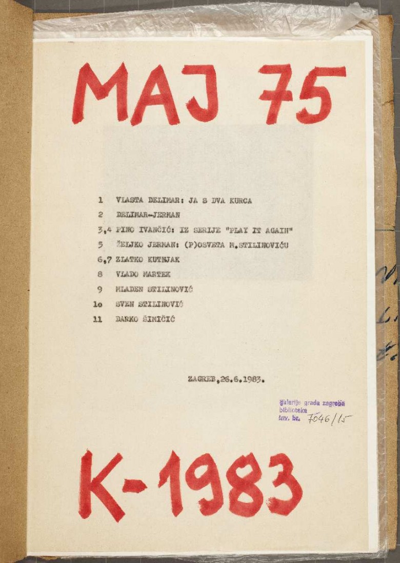 Maj 75, issue K, 26.06.1983.; Željko Jerman, Vlado Martek, Zlatko Kutnjak, Vlasta Delimar, Darko Šimičić, Pino Ivančić, Mladen Stilinović, Sven Stilinović