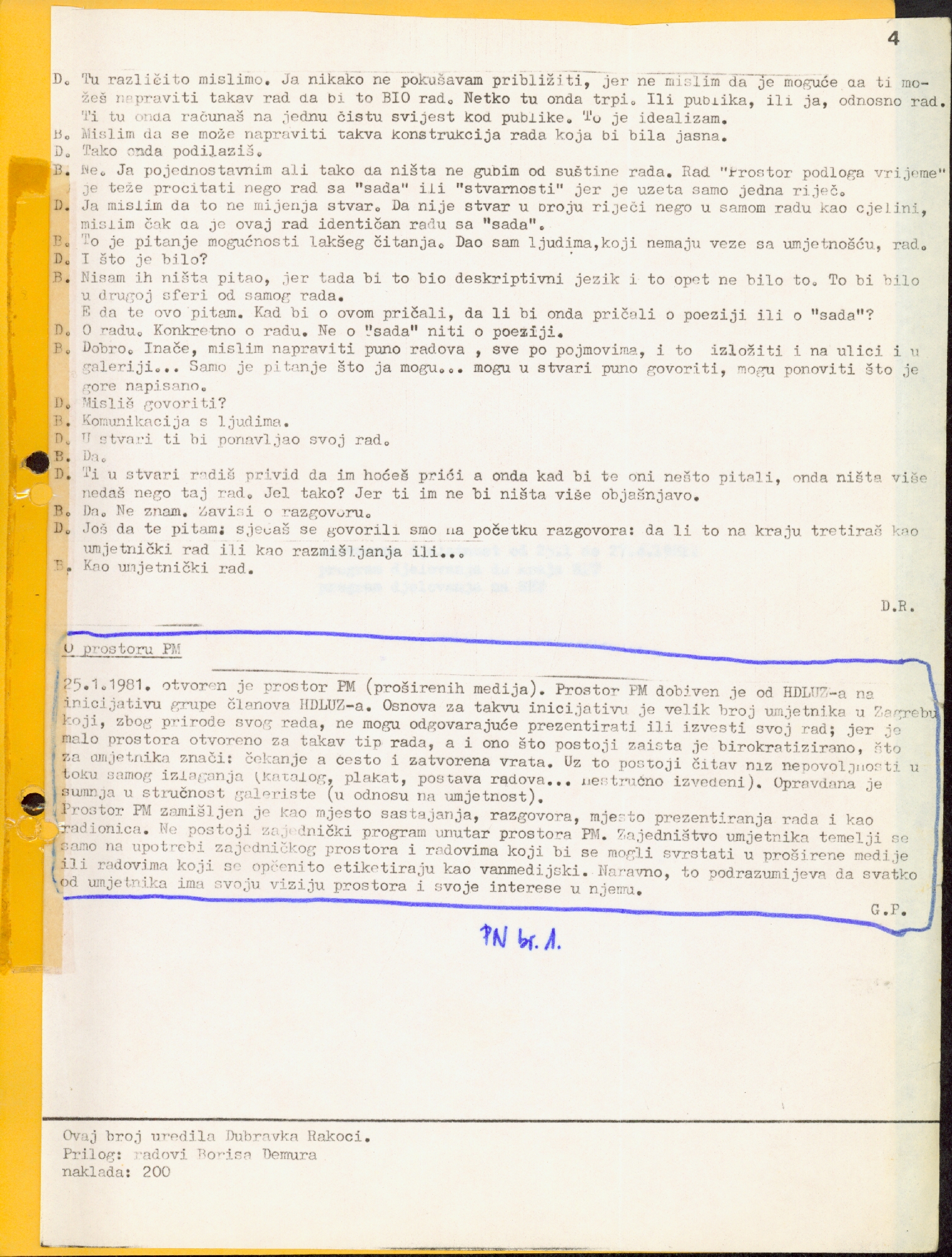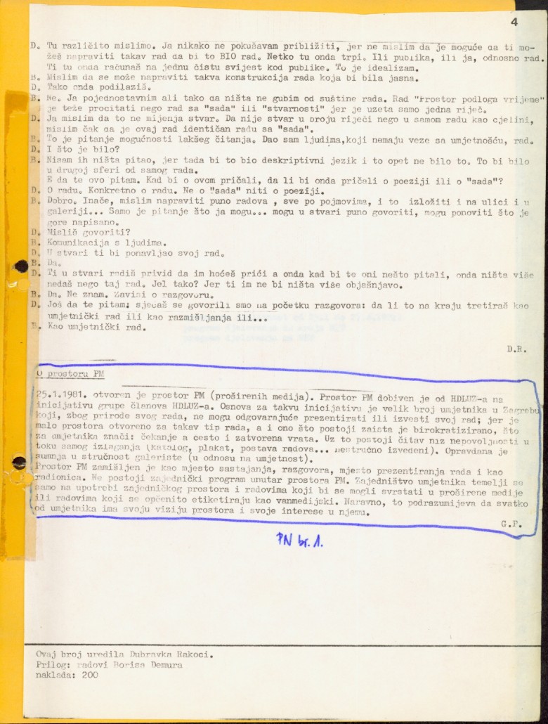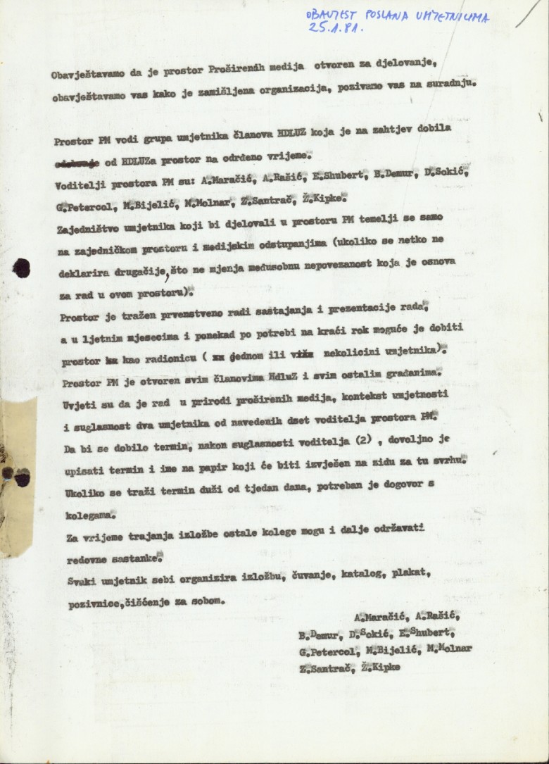 Antun Maračić, Ante Rašić, Boris Demur, Damir Sokić, Edita Shubert, Goran Petercol, Milivoj Bijelić, Marijan Molnar, Zlatko Santrač, Željko Kipke, Dubravka Rakoci, Željko Jerman, Pierre Restany, Goran Đorđević, Breda Beban, Vlasta Delimar, Vlado Martek, Tom Gotovac