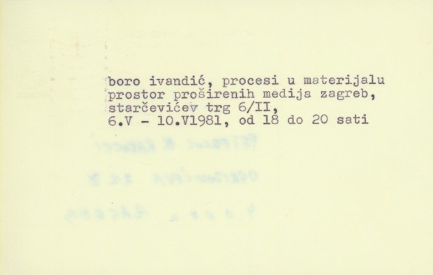 invitation for the exhibition "Procesi u materijalu" by Boro Ivandić in PM
