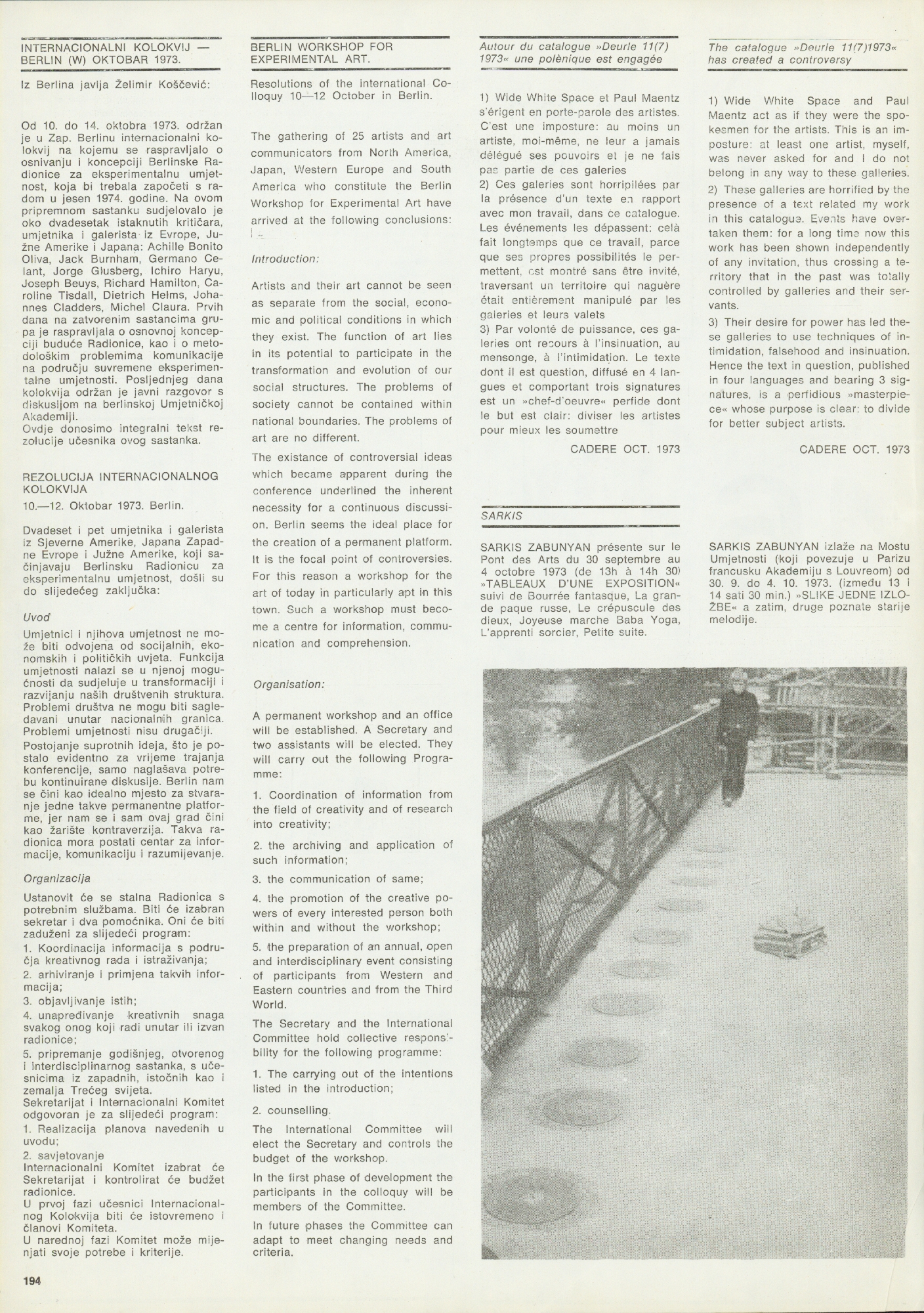 Dubravko Budić, Boris Bućan, Petar Dabac, Željko Stojanović, Želimir Koščević, Balint Szombathy, Ida Biard, Cadere, Radomir Damjanović-Damnjan, Albert Goldstein, Sarkis, Willghouby Sharp, Nikola Stojanović; Daniel Buren, Susan Sontag, Joseph Beuys, Hanne Darboven, Sol leWitt, Robert Rayman, Donald Judd
