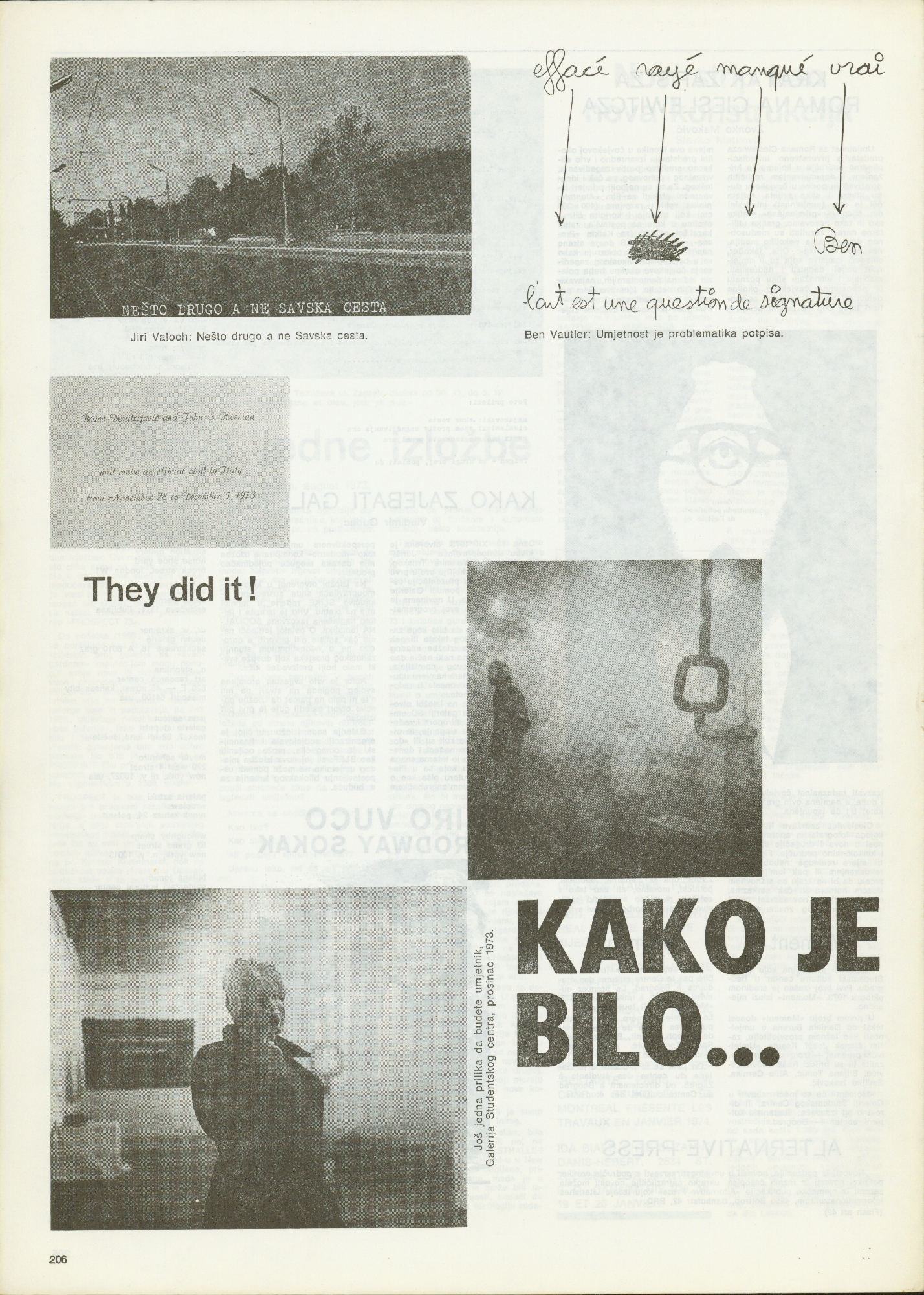 Željko Borčić, Goran Trbuljak, Petar Dabac, Želimir Koščević, Nena Baljković, Ida Biard, Daniel Buren, Jacques Lepage, Zvonko Maković, Slavko Matković, Jiri Valoch, Ann Kramer-Borčić, Joseph Müller Brockmann, Marcel Duchamp, Vladimir Gudac, Miro Vuco, Davor Matičević, Roman Cieslewicz, Ben Vautier