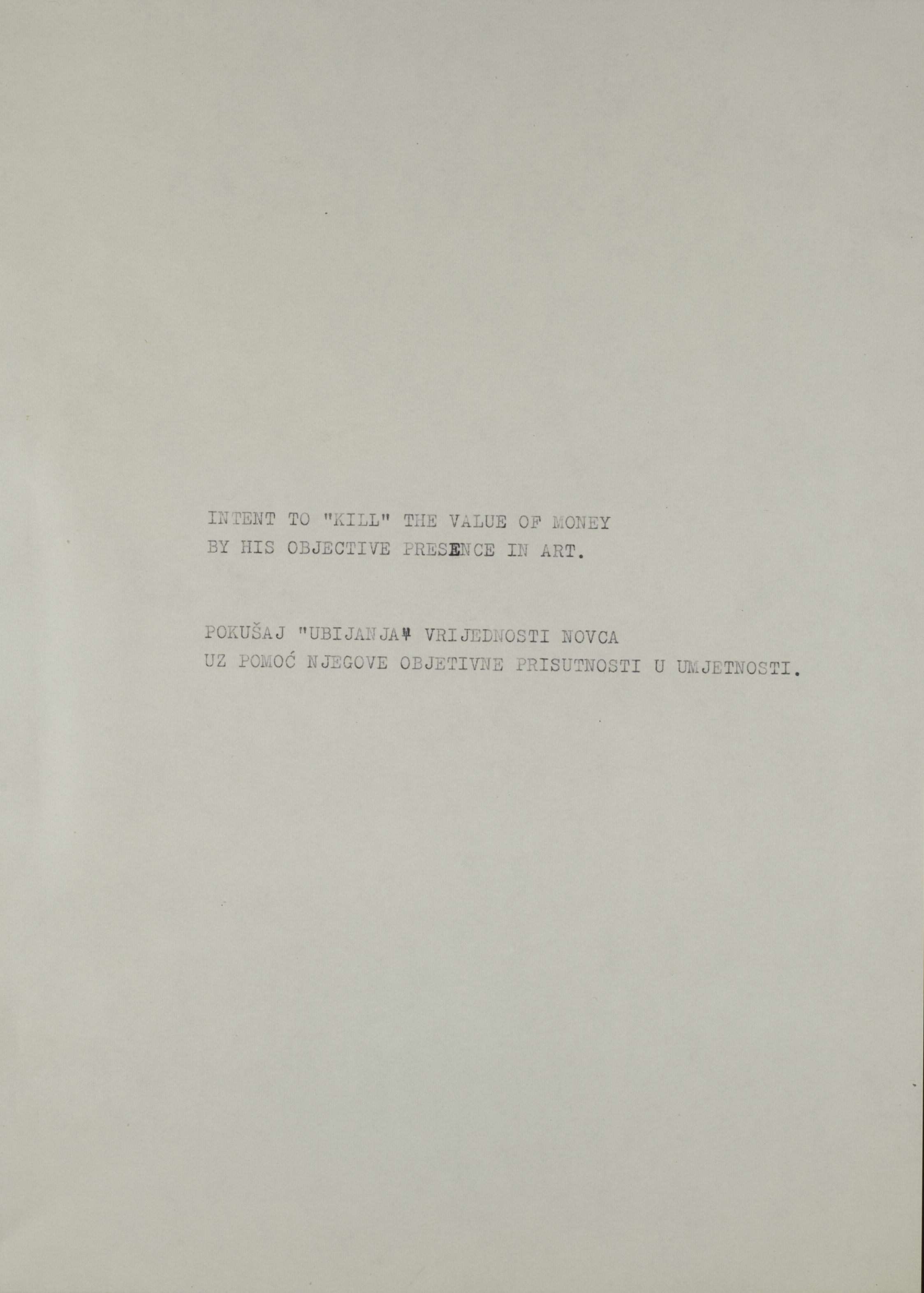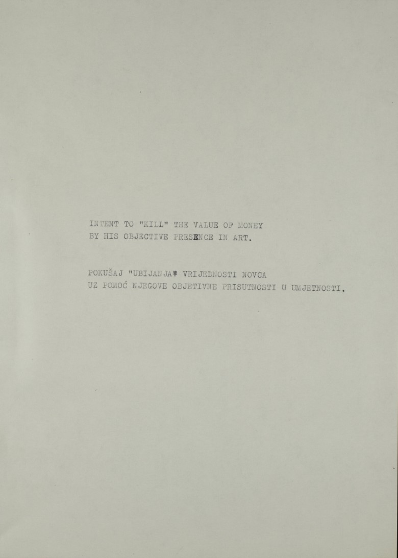 Pokušaj "ubijanja" vrijednosti novca uz pomoć njegove objektivne prisutnosti u umjetnosti