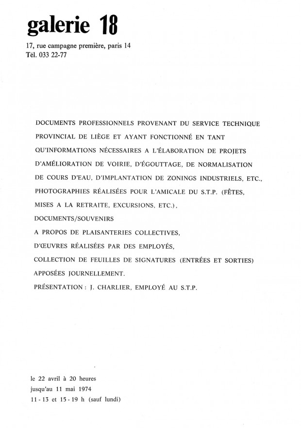 Galerie 18 - Jacques Charlier; Zaproszenie (1974) →