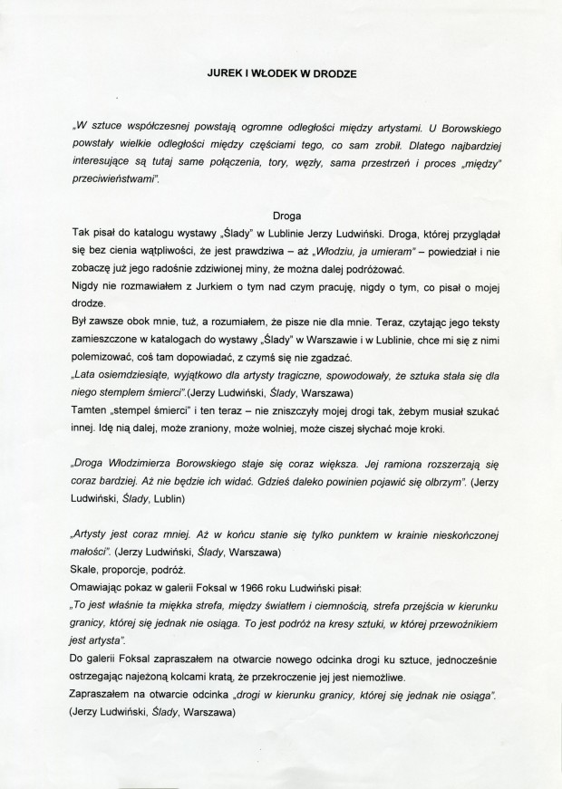• Tekst Włodzimierza Borowskiego do katalogu wystawy retrospektywnej w BWA Toruń, 1981 (wystawa nie odbyła się)