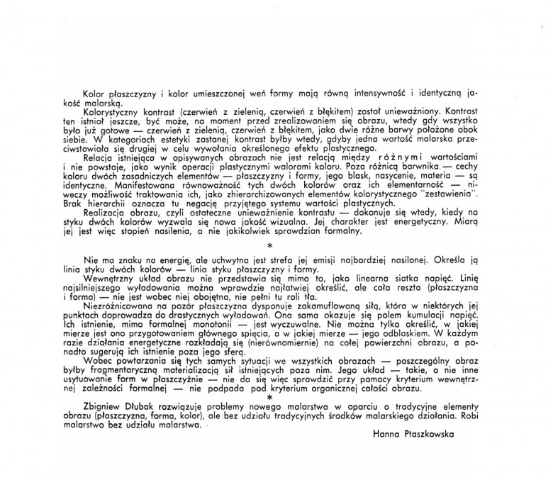 Katalog wystawy malarstwa Zbigniewa Dłubaka, Galeria Foksal, Warszawa 1966 (tekst Anka Ptaszkowska)