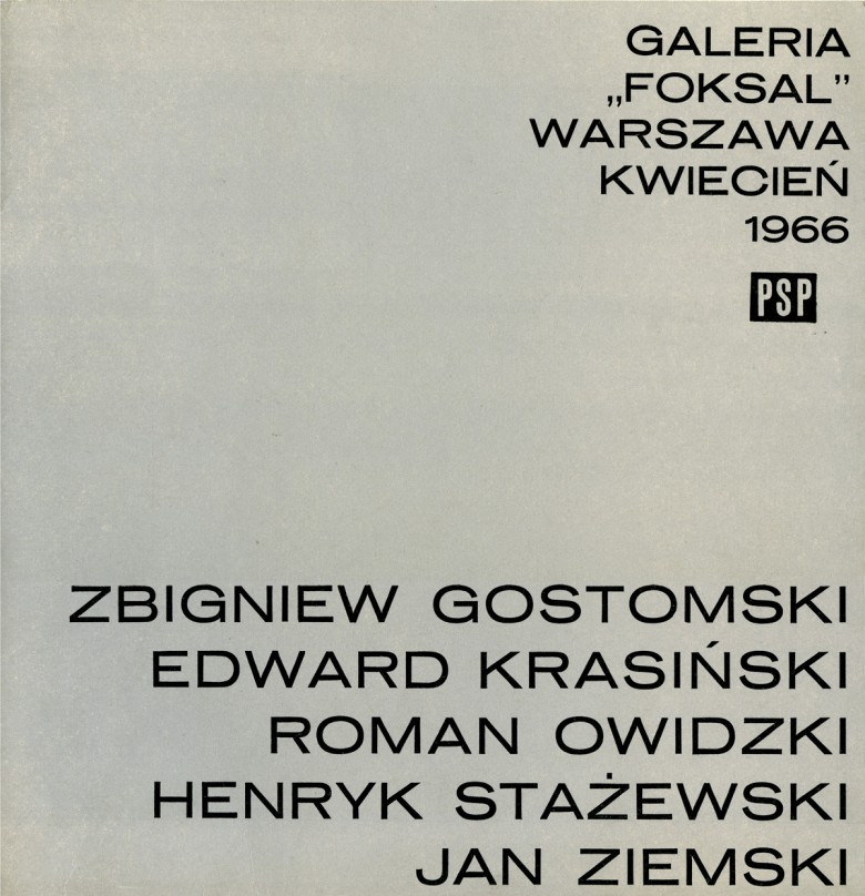 Katalog wystawy Zbigniewa Gostomskiego, Edwarda Krasińskiego, Romana Owidzkiego, Henryka Stażewskiego i Jana Ziemskiego, Galeria Foksal, Warszawa 1966 (zdjęcia: Eustachy Kossakowski i Tadeusz Rolke)