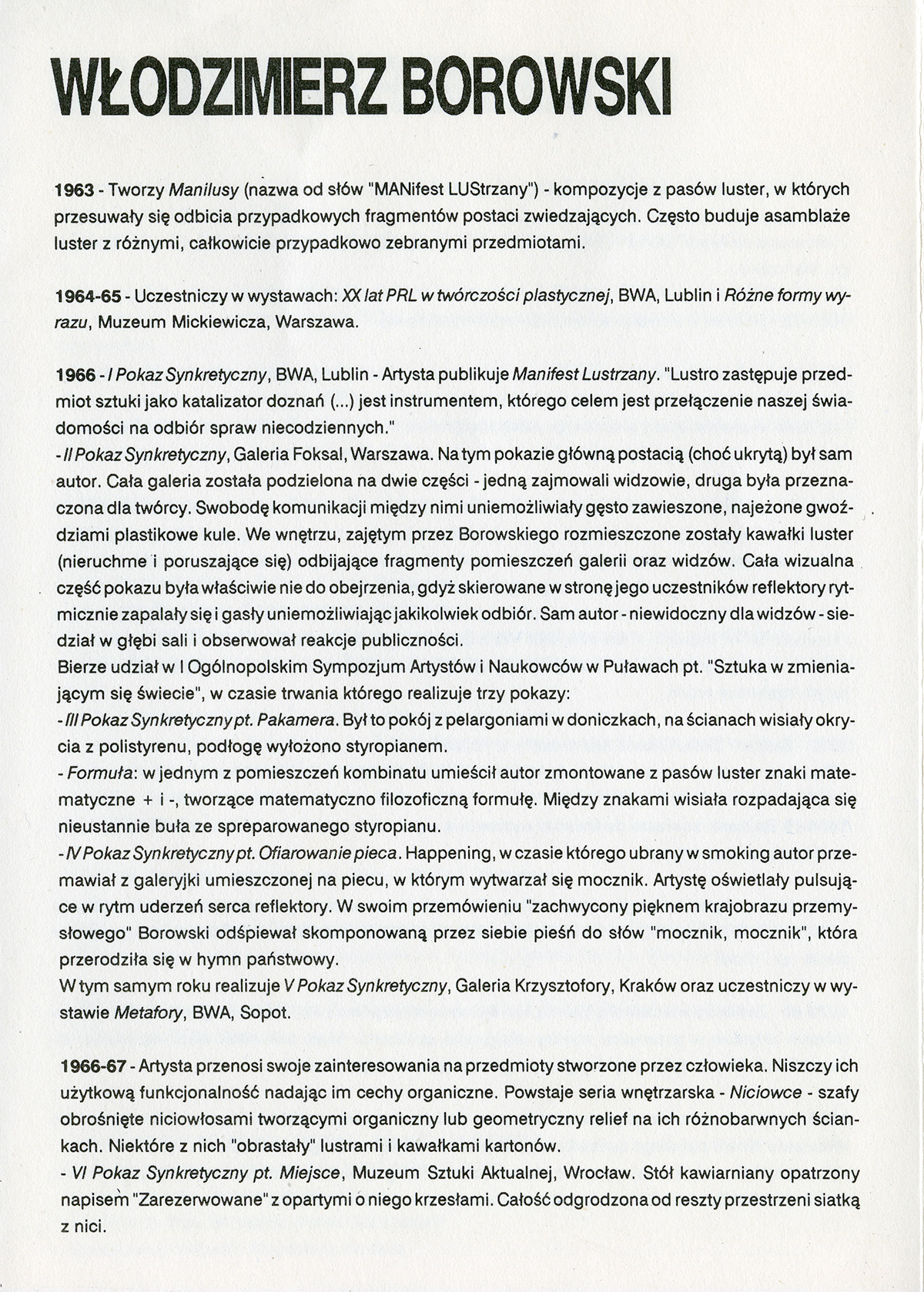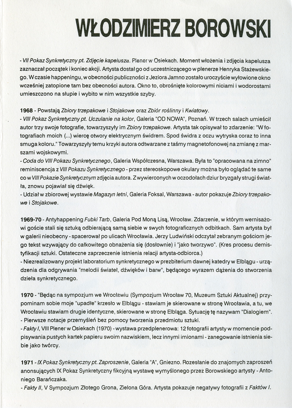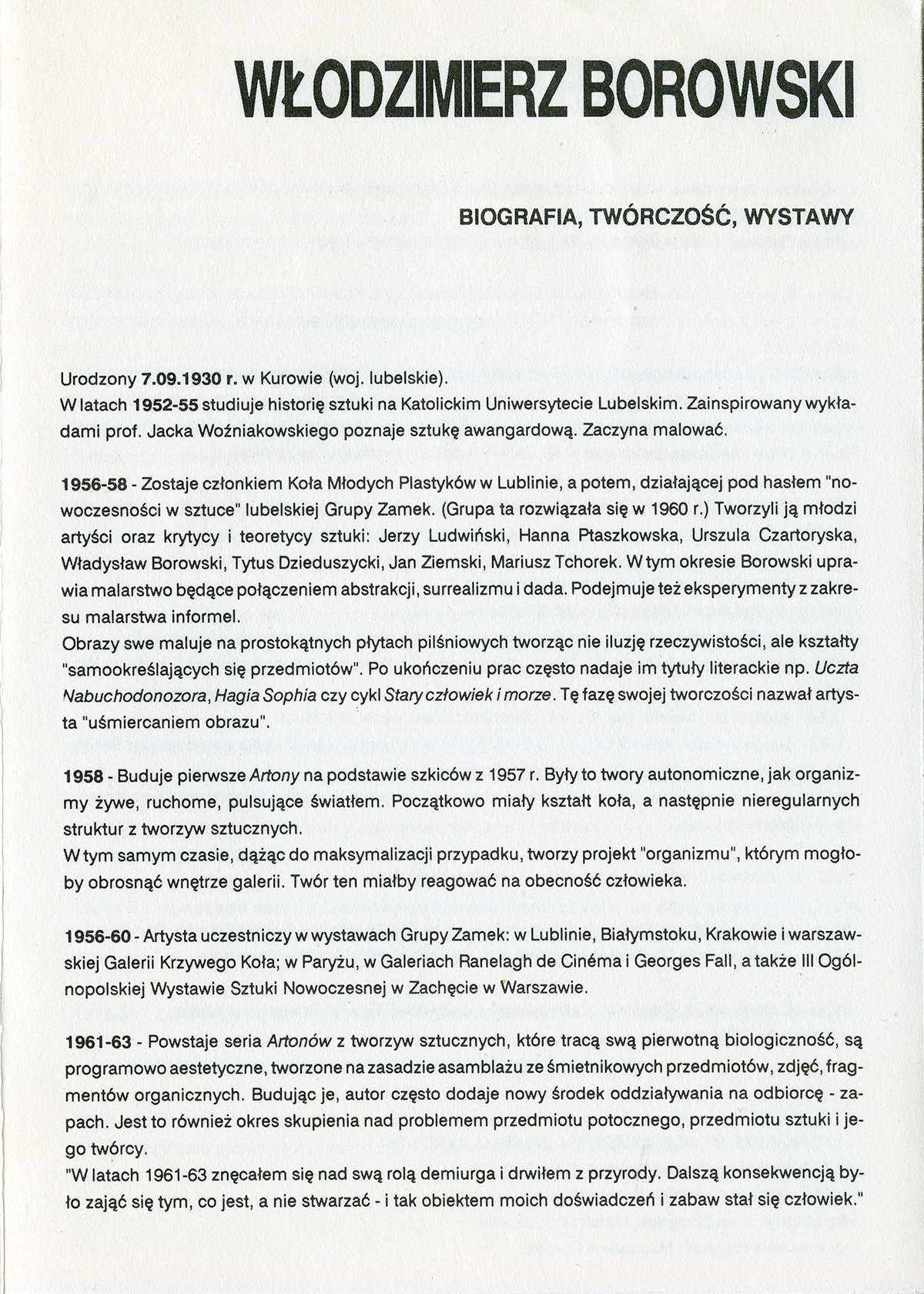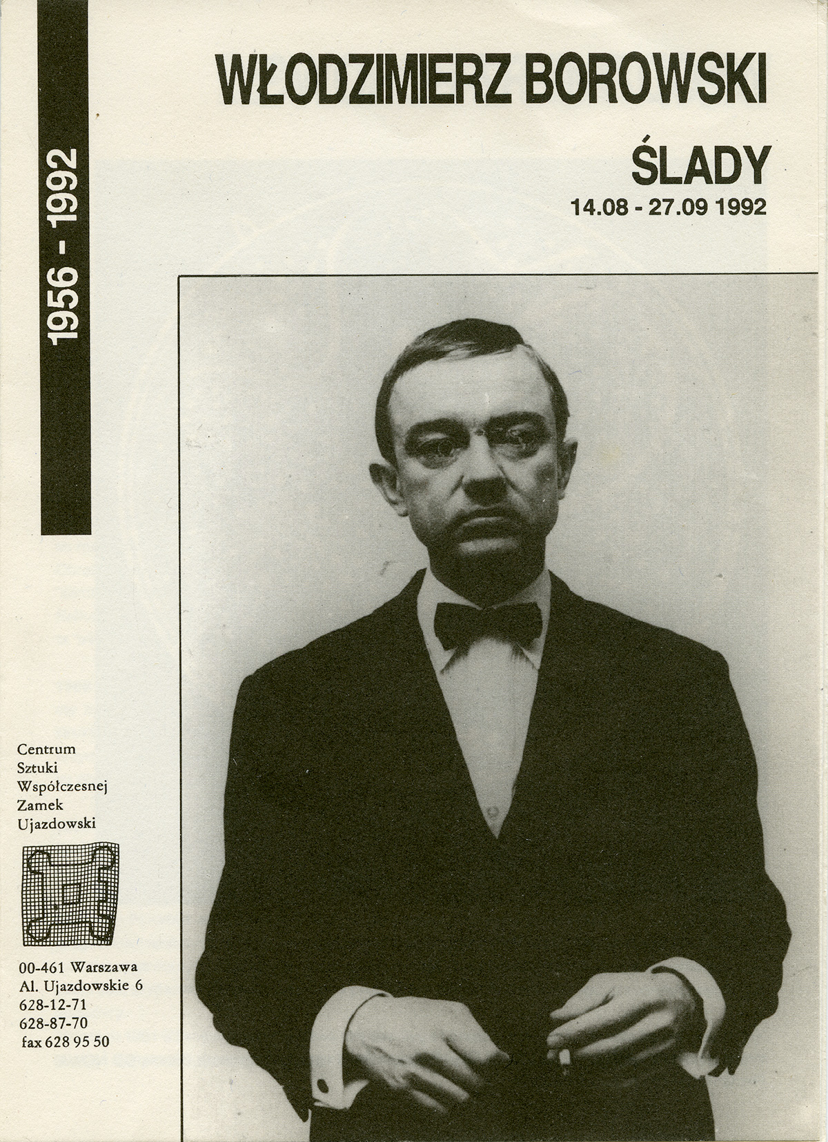 Katalog wystawy Włodzimierza Borowskiego „Ślady” (obejmująca wybrane prace z lat 1956-1992) w Centrum Sztuki Współczesnej w Warszawie, 1992
