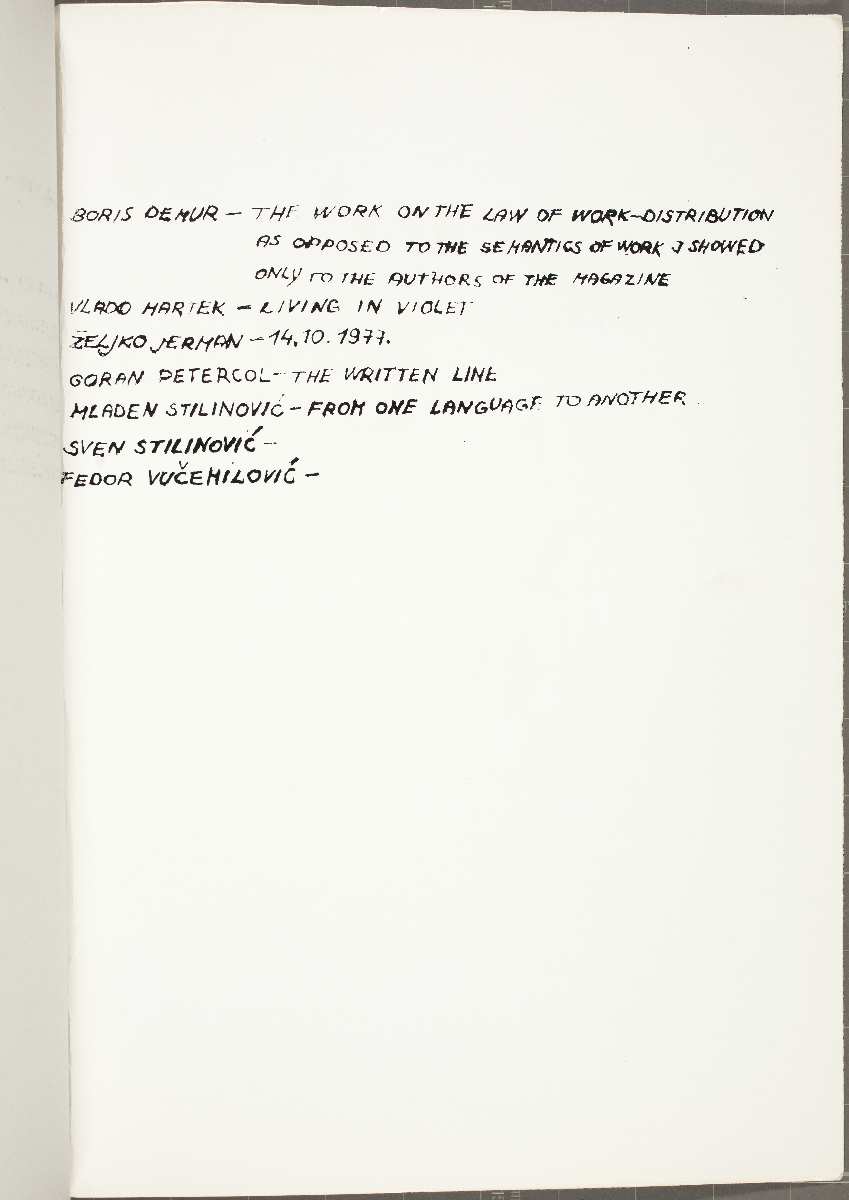 Maj 75, broj Č, 1979; Boris Demur, Željko Jerman, Vlado Martek, Mladen Stilinović, Sven Stilinović, Fedor Vučemilović, Goran Petercol