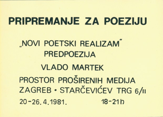 Pripremanje za poeziju "Novi poetski realizam" Predpoezija, 1981