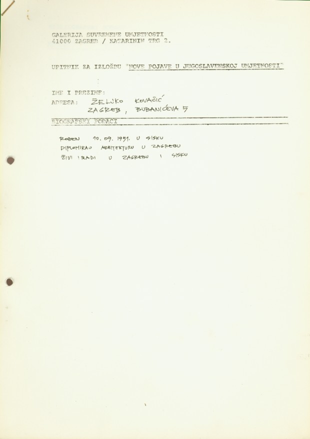 Nova umjetnička praksa, izložba, Galerija suvremene umjetnosti