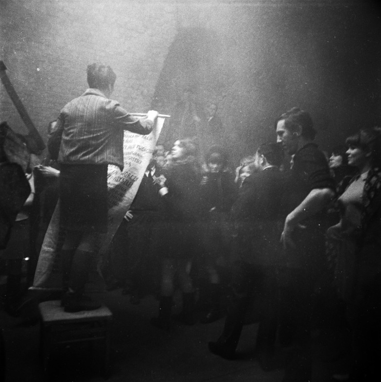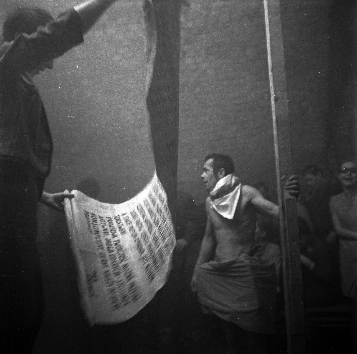 Eustachy Kossakowski's photographs of Jerzy Bereś's happening „Prophecy II” at the Krzysztofory Gallery, Krakow, 1968