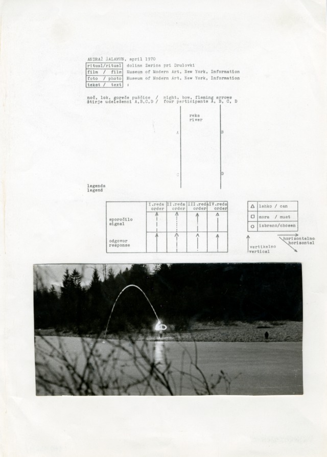 komunikacija med dvema bregovoma Save s pomočjo loka in gorečih puščic Projekt je bil predstavljen v reviji Problemi, septembra 1970, letnik VII, številka 93. Film