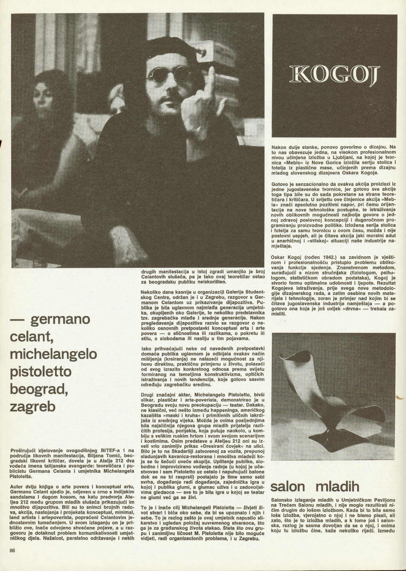 Davor Tomičić,Enes Midžić, Goran Trbuljak, Želimir Koščević, Željka Čorak, Davor Matičević, Germano Celant, Jean Clay, N. Gligo, Oskar Kogoj, grupa OHO, Bohuslaw Schäffer