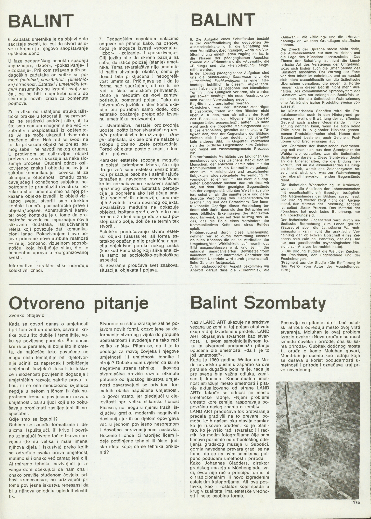Dubravko Budić, Željko Borčić, Petar Dabac, Enes Midžić, Želimir Koščević, Balint Szombathy, Zvonko Maković, Marijan Tršar, Slavko Matković, Marijan Susovski; Zvonko Stojević, Jorge Glusberg, Milomir Milo Jevtić, Marjan Tršar, Zvonko Stojević