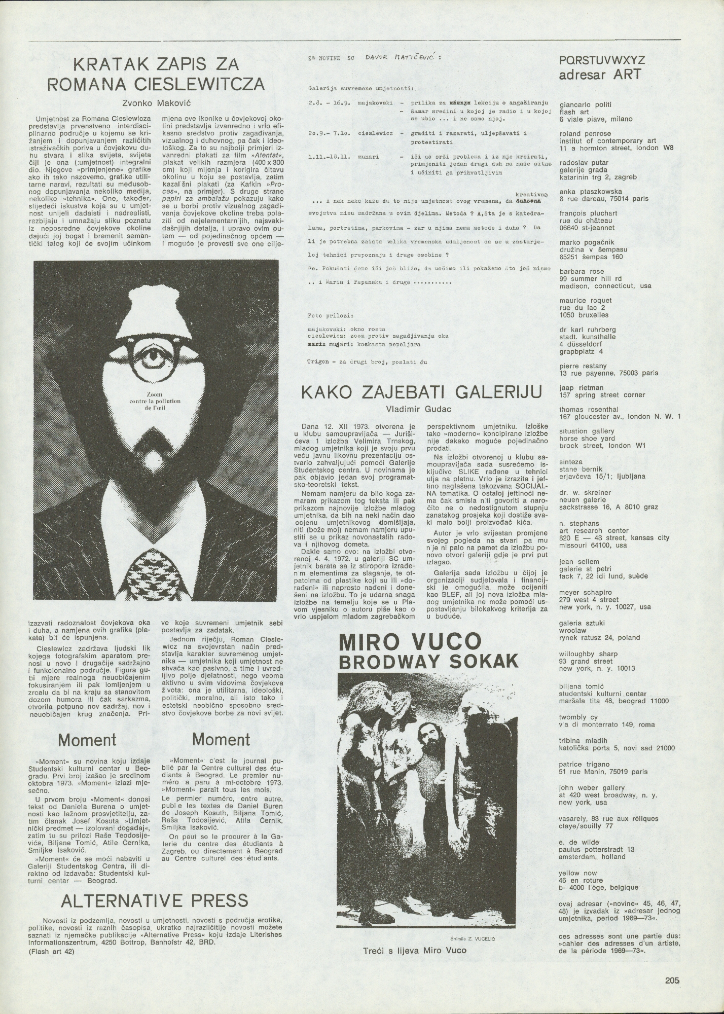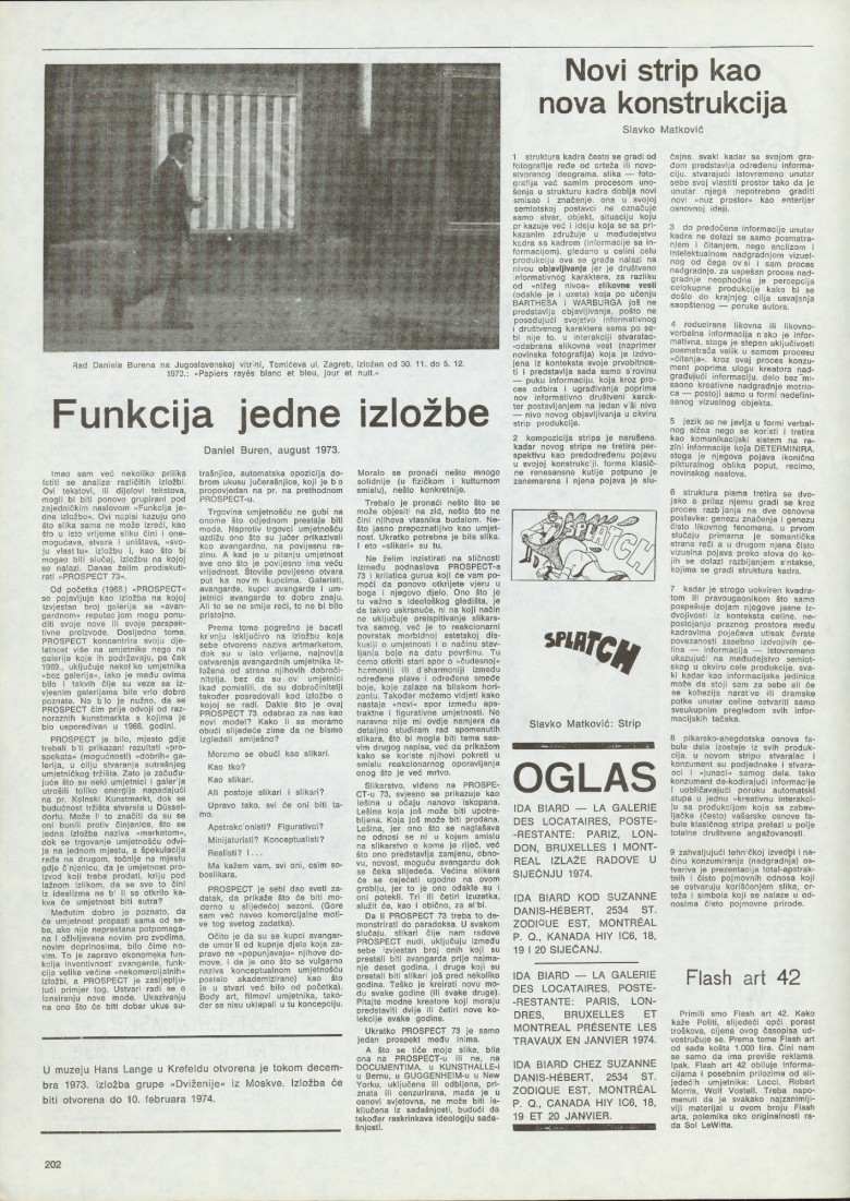 Željko Borčić, Goran Trbuljak, Petar Dabac, Želimir Koščević, Nena Baljković, Ida Biard, Daniel Buren, Jacques Lepage, Zvonko Maković, Slavko Matković, Jiri Valoch, Ann Kramer-Borčić, Joseph Müller Brockmann, Marcel Duchamp, Vladimir Gudac, Miro Vuco, Davor Matičević, Roman Cieslewicz, Ben Vautier