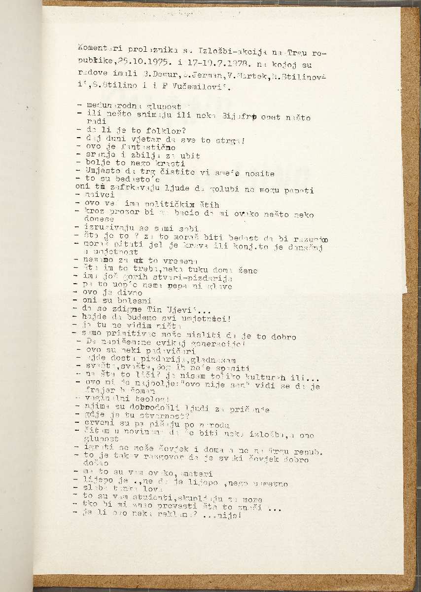 Komentari prolaznika sa izložbi-akcija na Trgu republike 25.10.1975. i 17-19.7.1978.