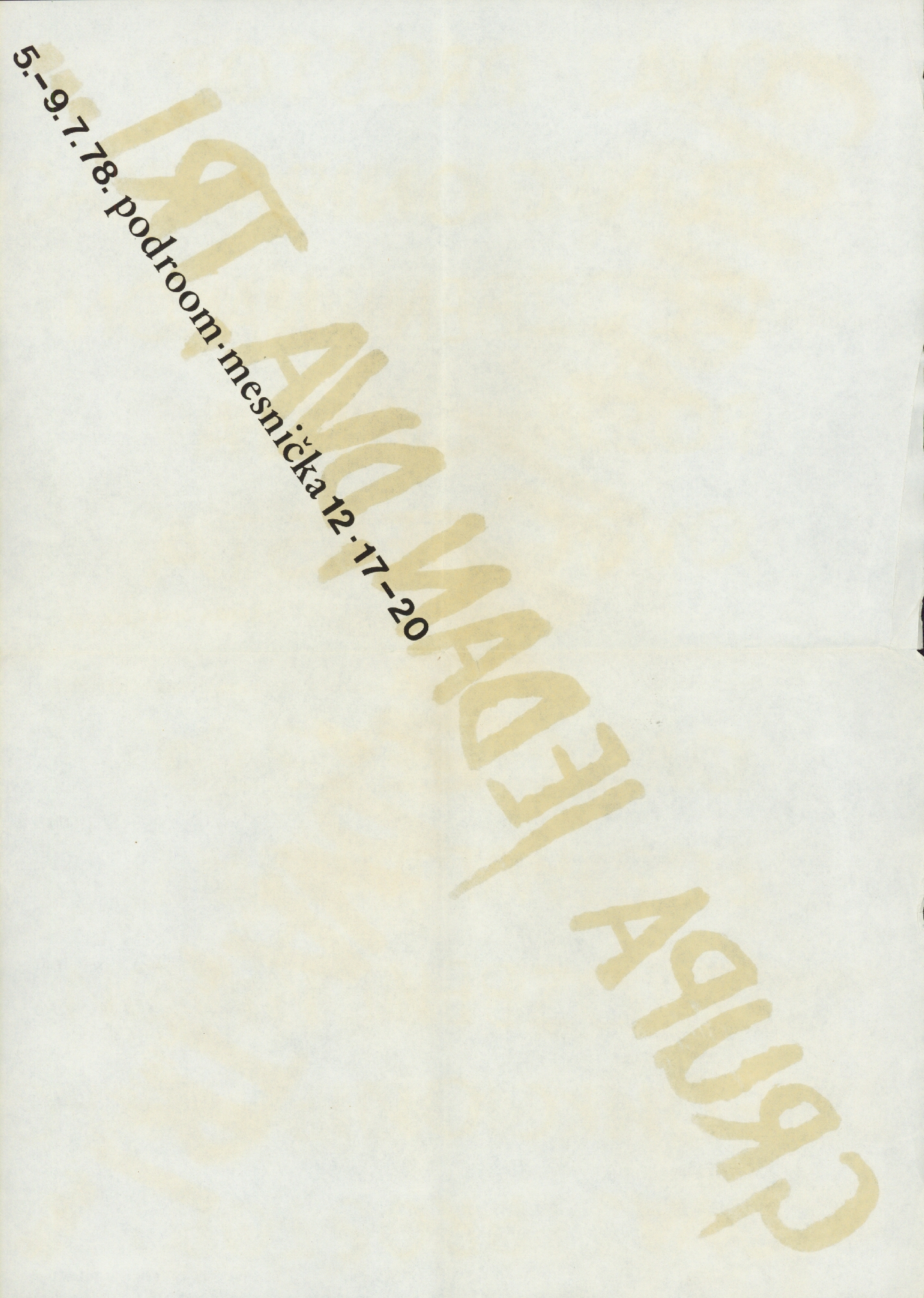 poster izložbe grupe jedan, dva, tri u Podroom, Mesnička 12, Zagreb;
