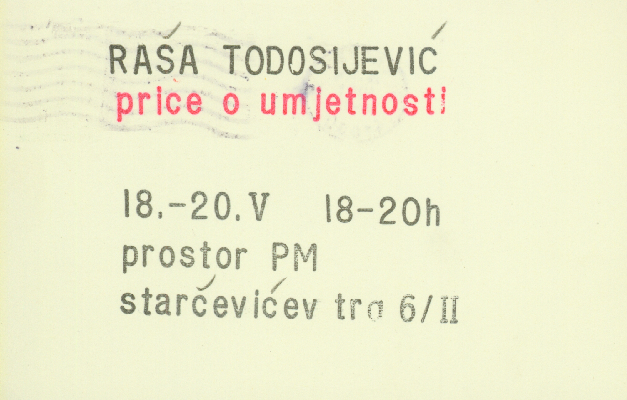 poziv na izložbu "Priče o umjetnosti" Raše Todosijevića u PM