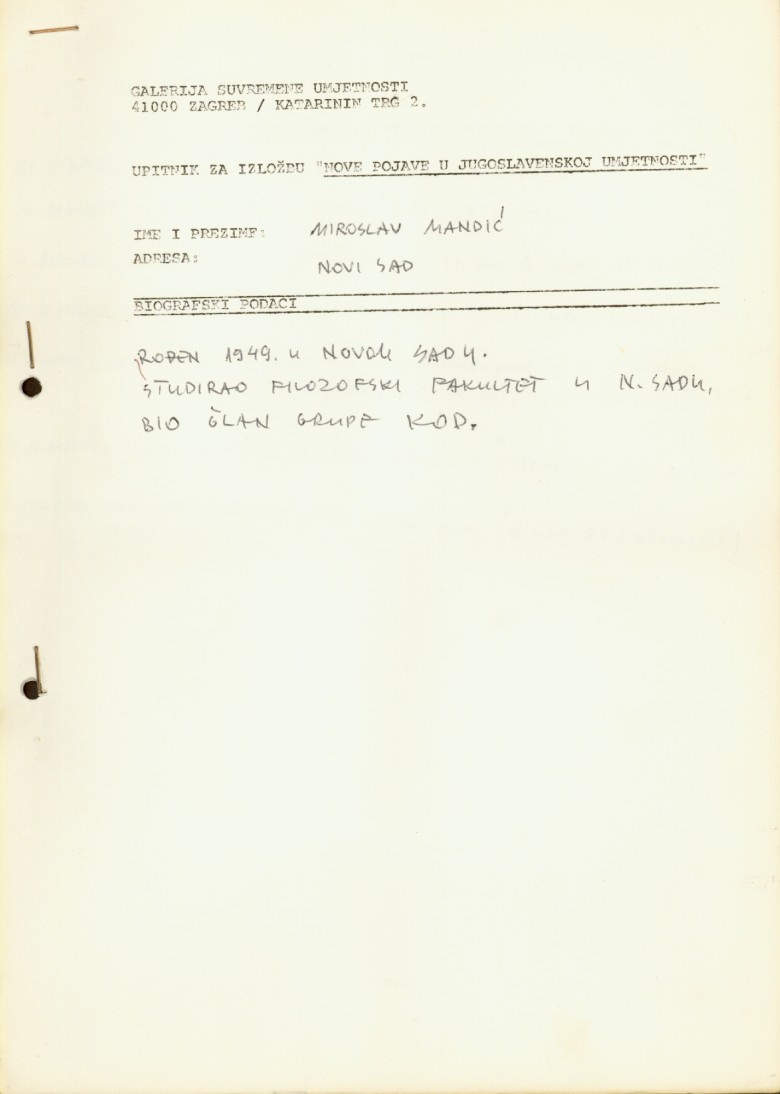 Nova umjetnička praksa, izložba, Galerija suvremene umjetnosti